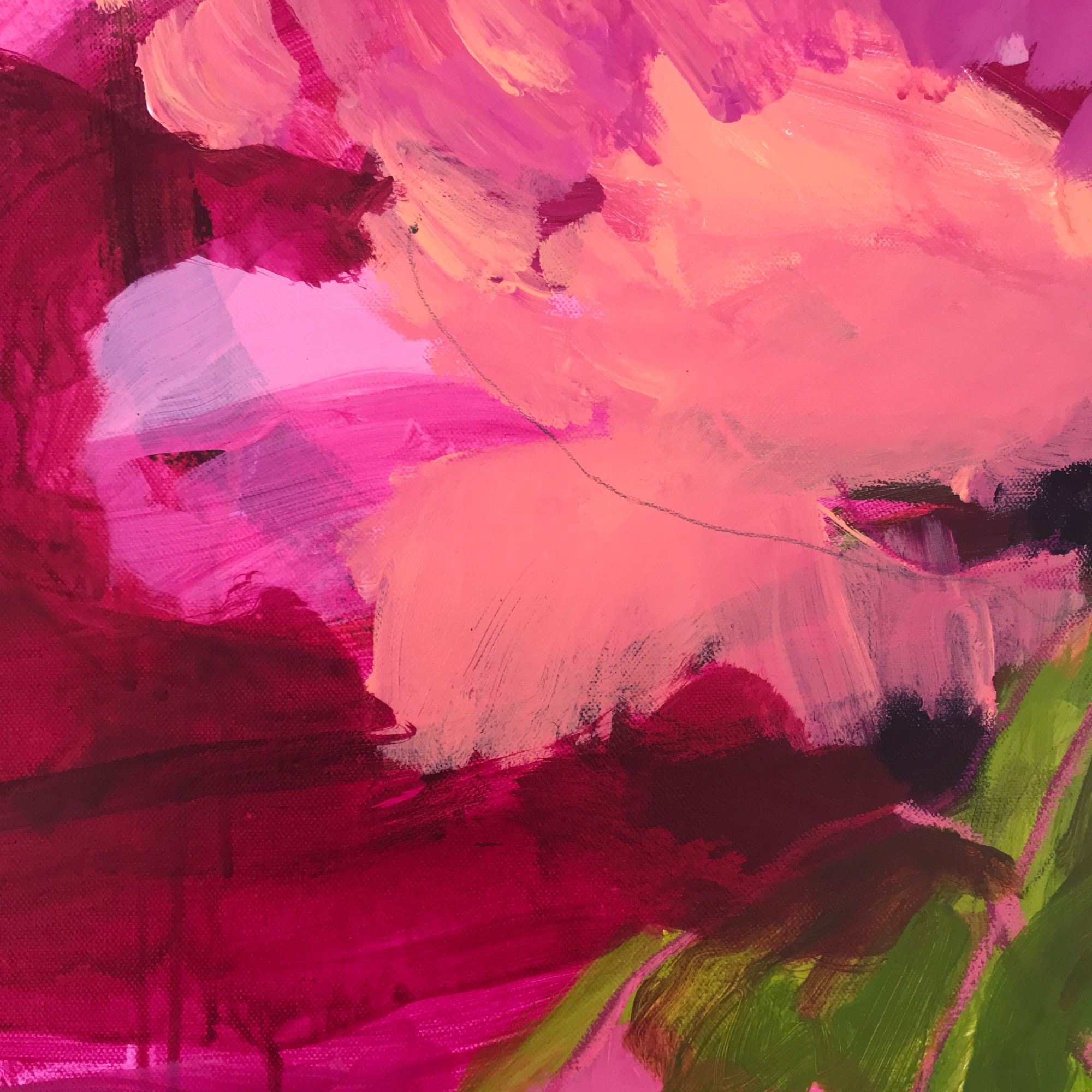Pink for me represents love and what could be better than true love? This is a floral but the dominant shapes also remind me of our most vital organ, the heart.