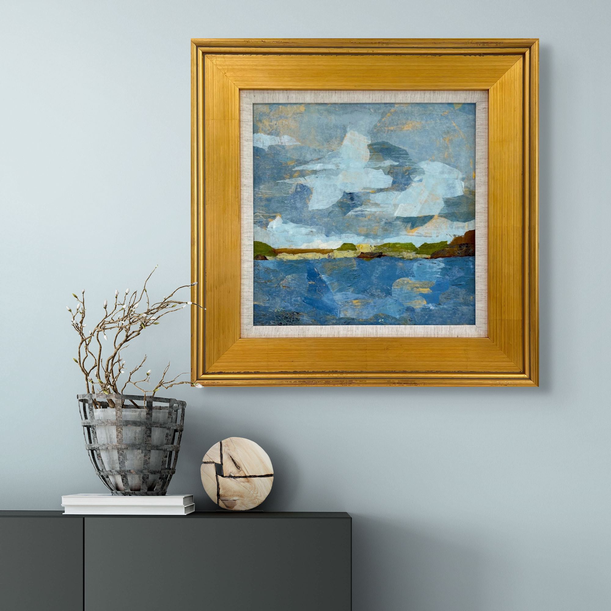 Hand painted collage elements on panel.