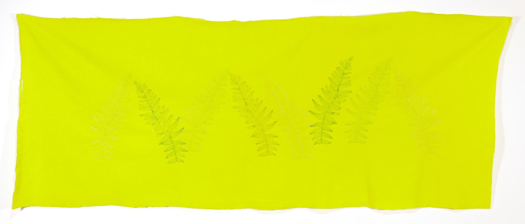 Using neon green as a base, this piece references neon signs, a symbol of contemporaneous capitalism which is an actively force of destruction of our natural world. Using ferns as language, this work is a billboard for ferns and other plant life, fighting for their lives and for ours.