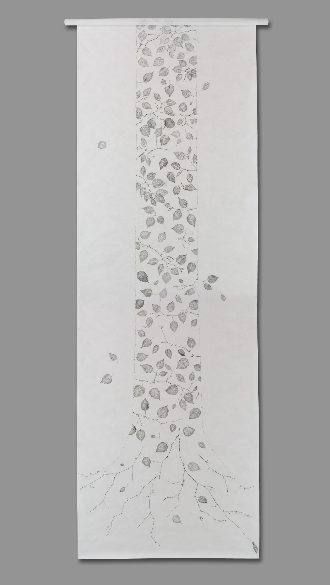 115 x 39 inch, graphite on archival Tyvek (designed to be rolled to various heights from about 7.5 to 9.5 feet)
