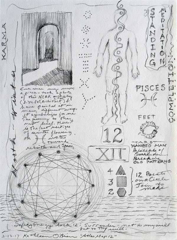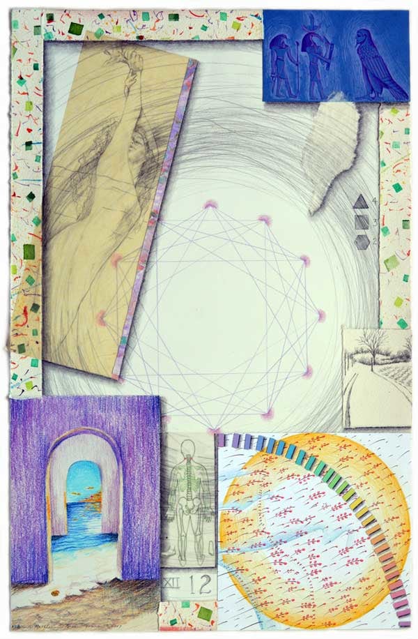 By way of elaboration each collage is accompanied with a drawing that includes symbols and notes about time space essence and the Jin Shin Jyutsu Safety Energy Locks as they relate to the number. Each also questions for you to ponder and journal about.
