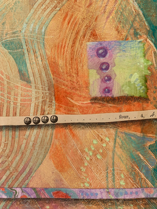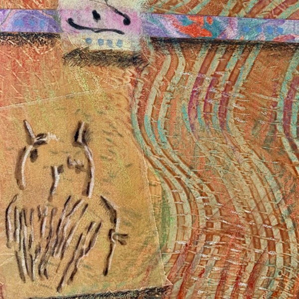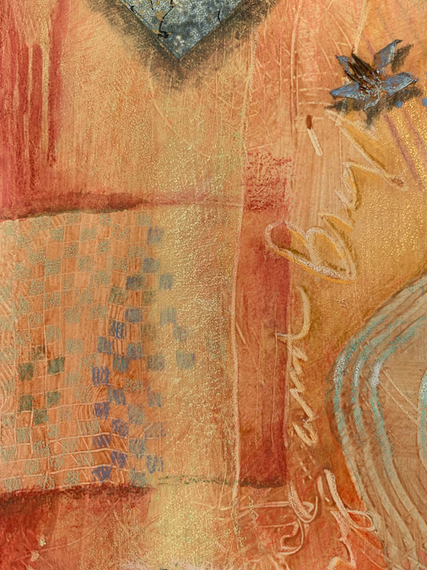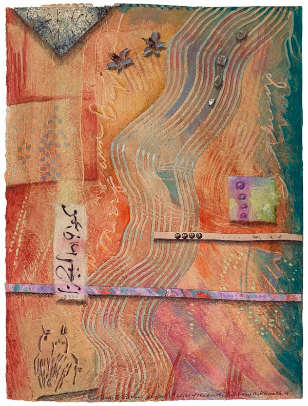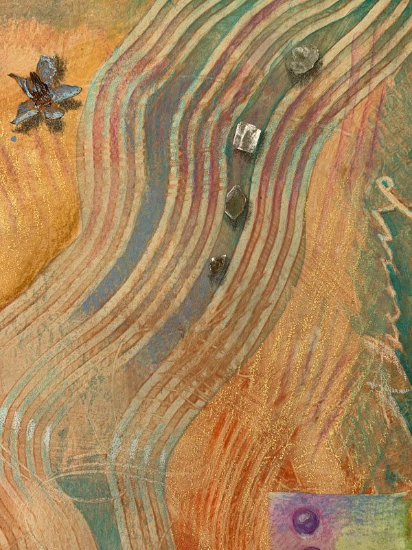 abstract watercolor, drawing, mica and botanicals on paste paper combined into collages inspired by the Chauvet Caves, France