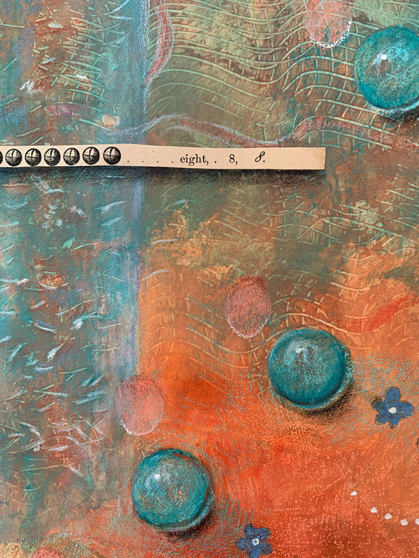 abstract watercolor, drawing and botanicals on paste paper combined into collages inspired by the Chauvet Caves, France