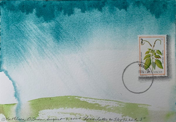 “Little Love Letter 10″ celebrates the joy of sharing the positive message of rain. Abstract watercolor, drawing, and stamp