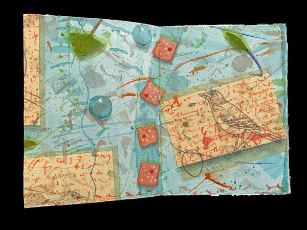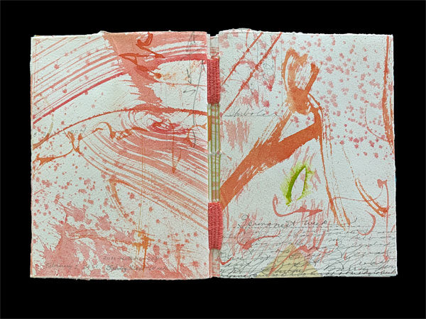 16 page artist book wit leaves, woven binding