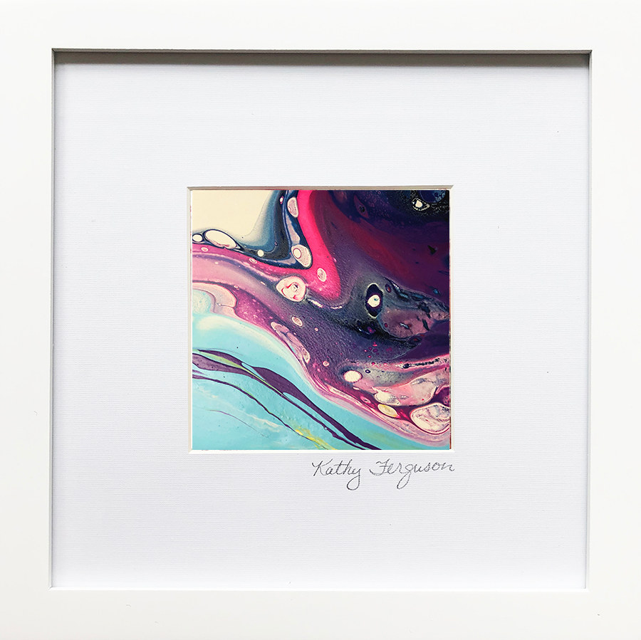 Mixed media artist, Kathy Ferguson, paints colorful abstract settings that are whimsical, richly layered, and complex.