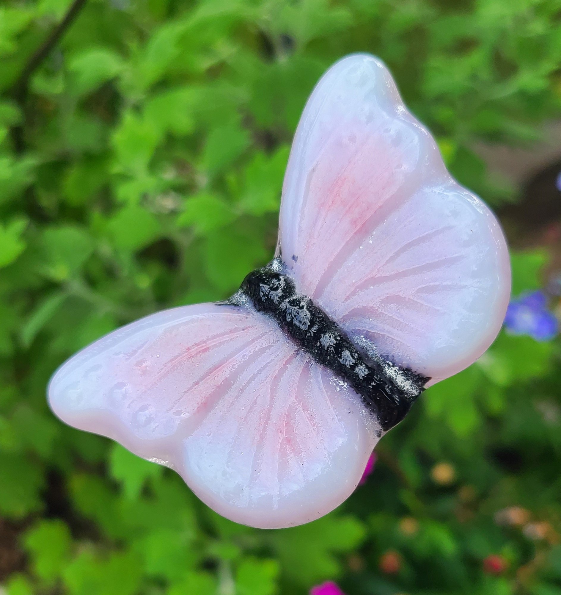 Plant Pick-Butterfly, Small in White with Pink Accents