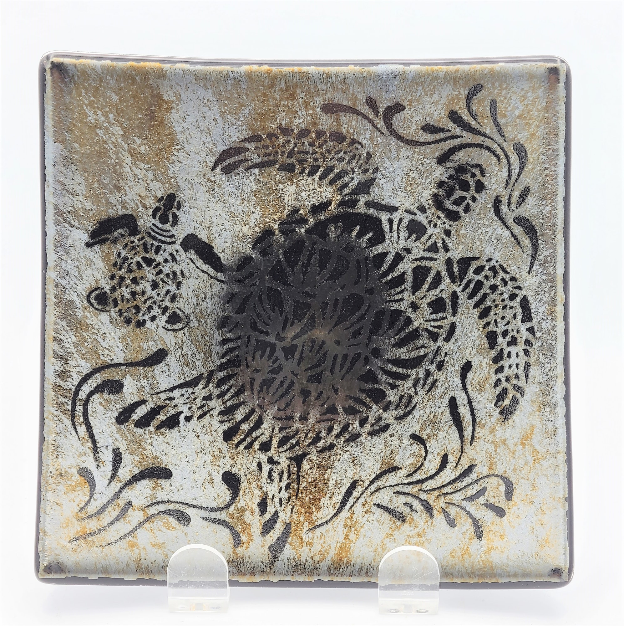 Plate in Silver Irid on Black with Sea Turtle Mother & Baby