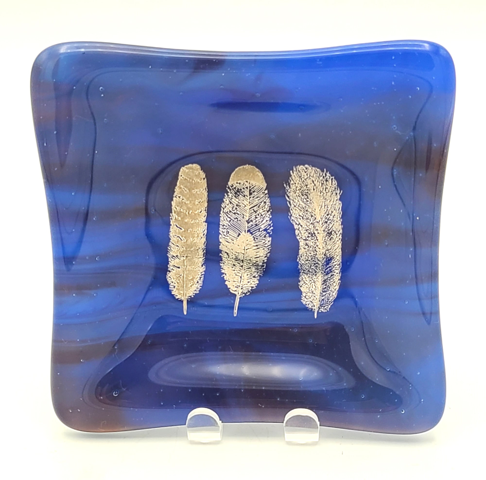 Small Dish-Blue Streaky with Silver Feathers