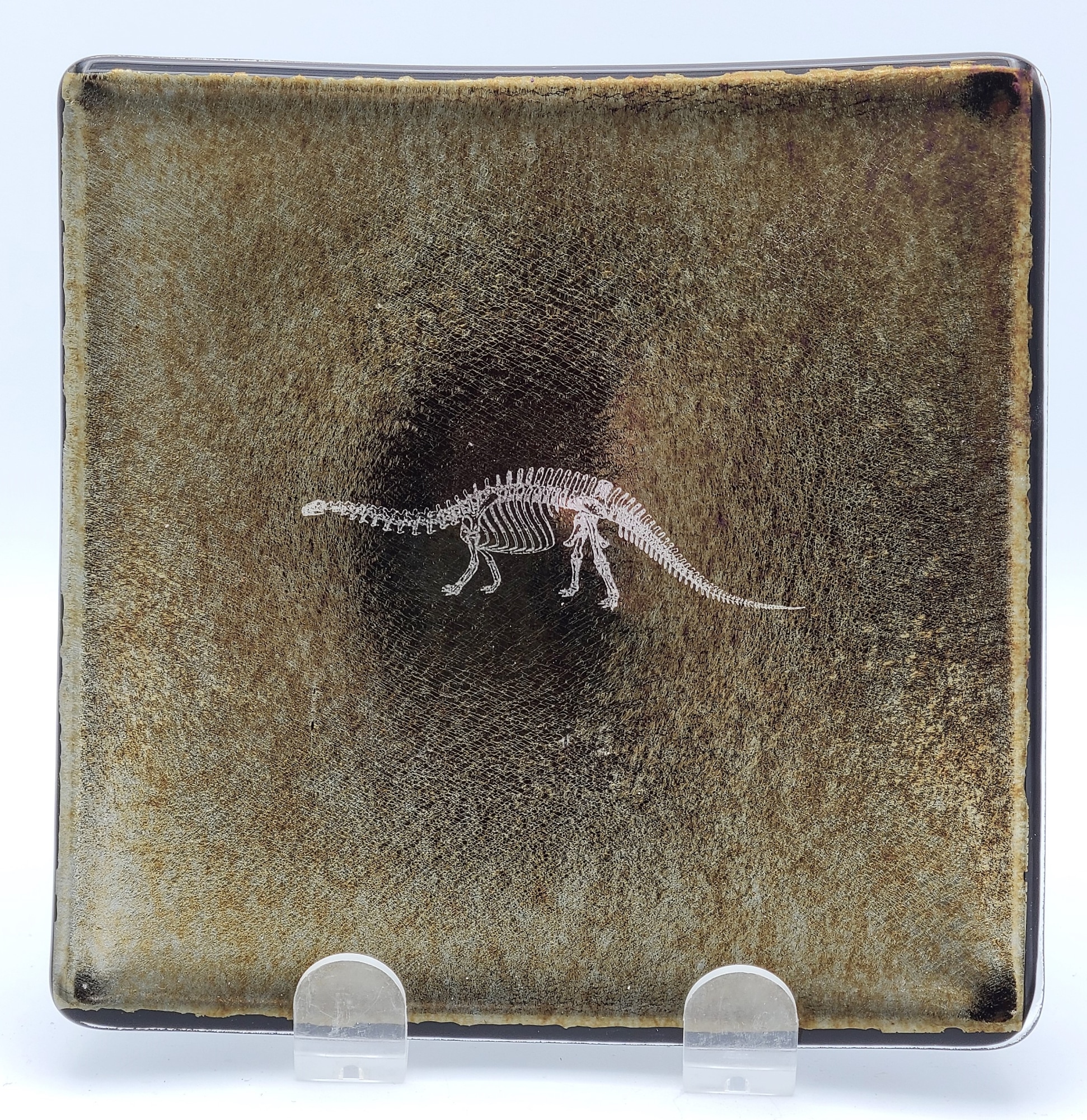 Small Plate with Brontosaurus on Black Irid