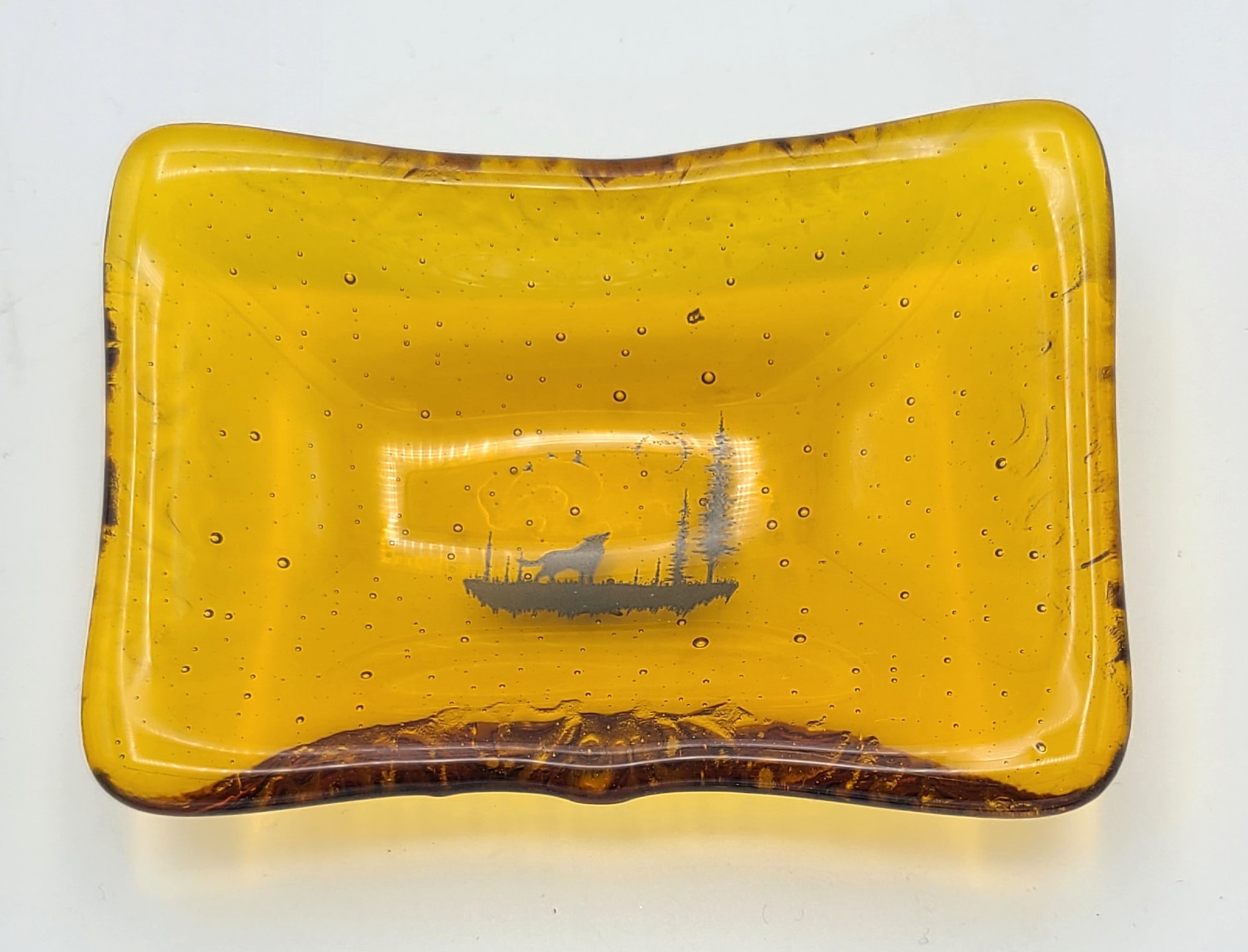Trinket Dish-Coyote Howling in Forest on Amber