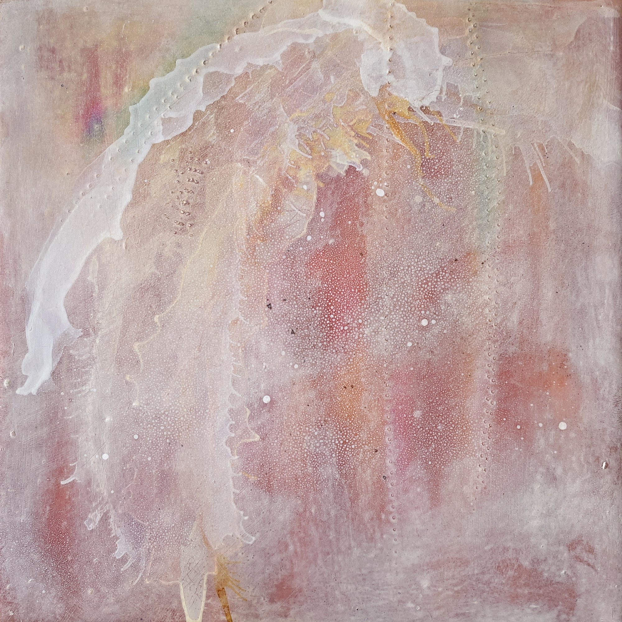 Cold wax, ink, oil encaustic & photo on panel