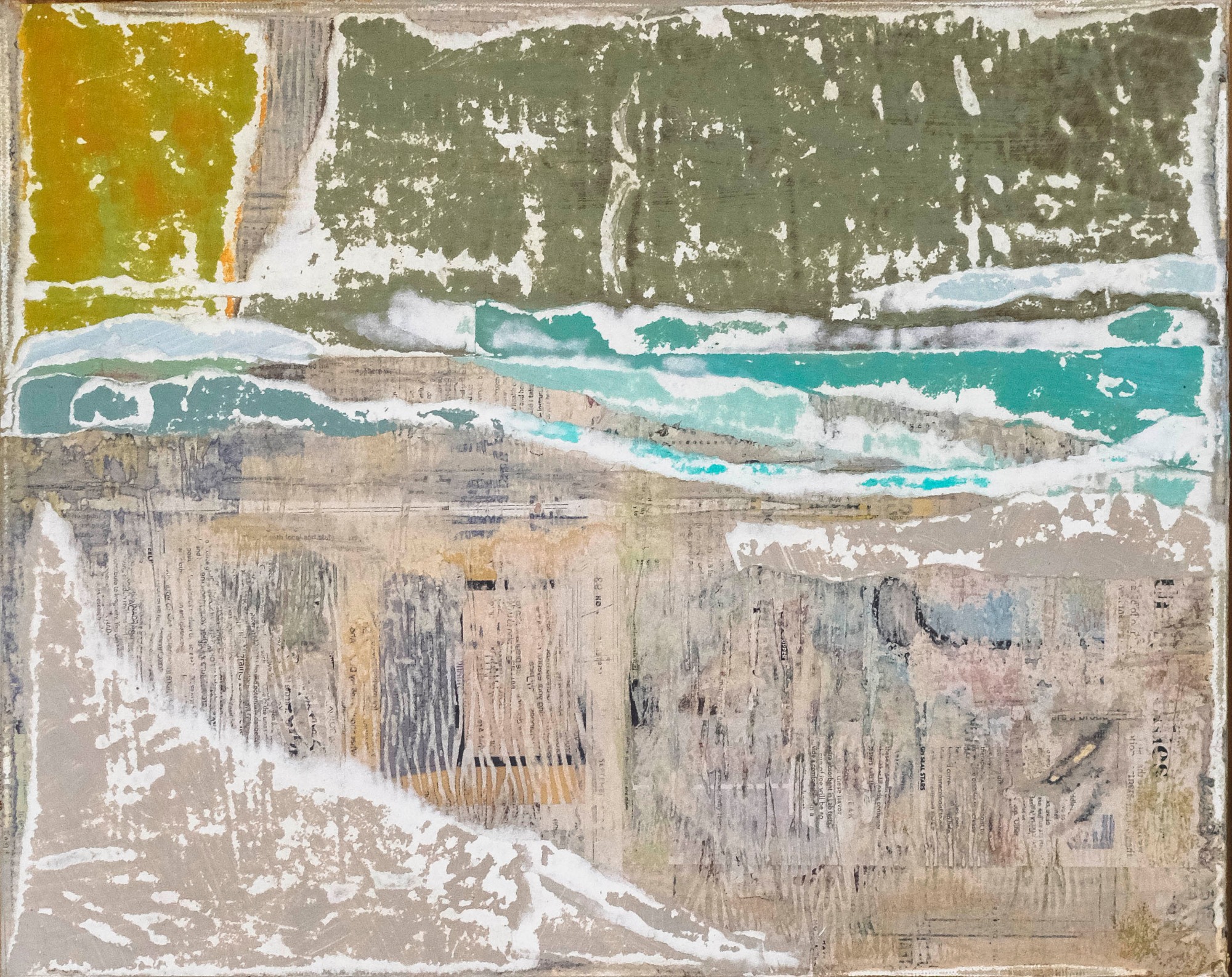 acrylic, paper collage on canvas