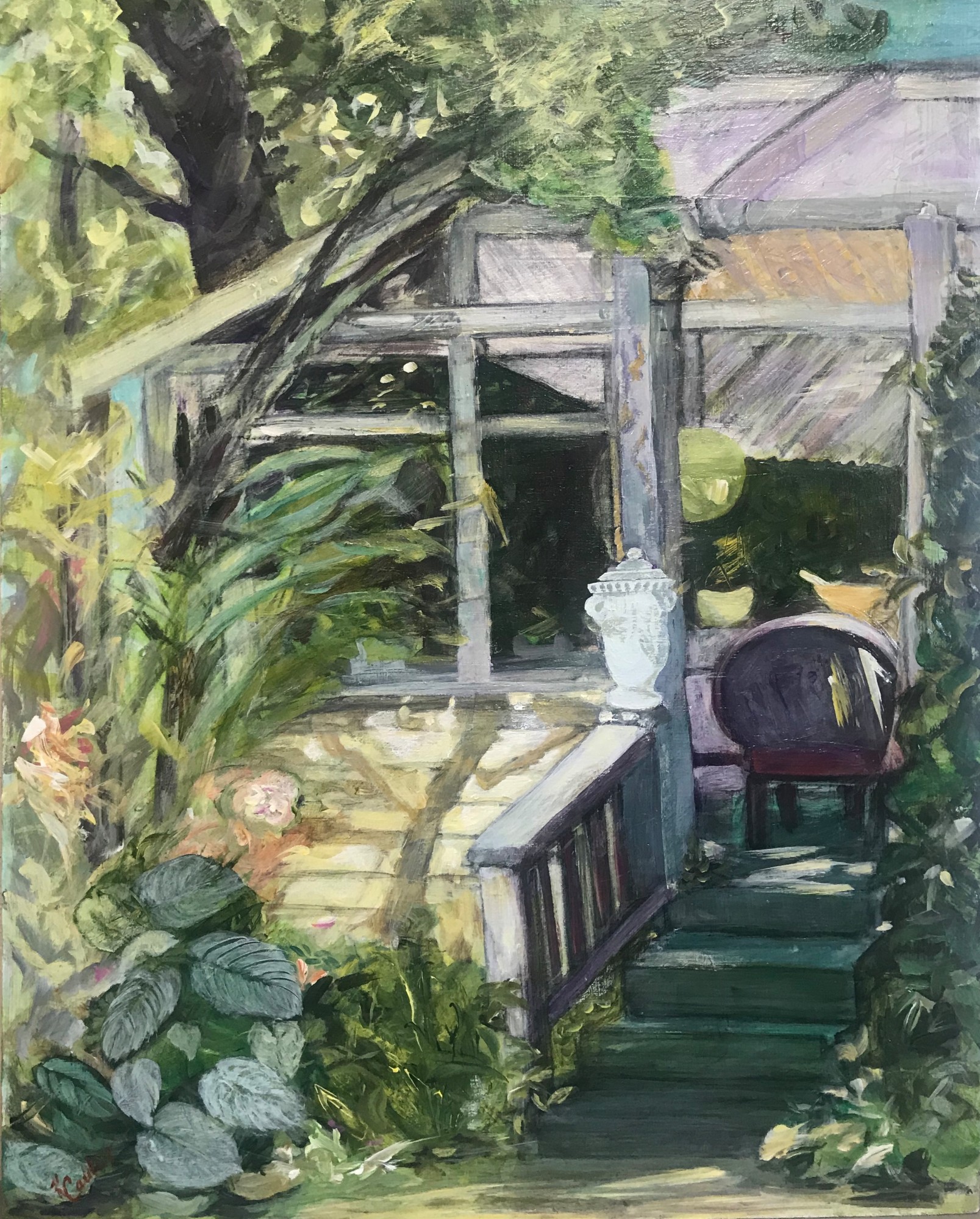 MessageView into the secluded porch at Baldessare’s Italio Gardens in Medford OR