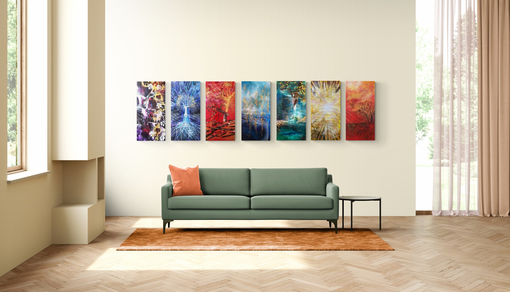 Set of 7 paintings, each size is 10 x 20 in. Each paintings inspired by I AM statements in book of John.