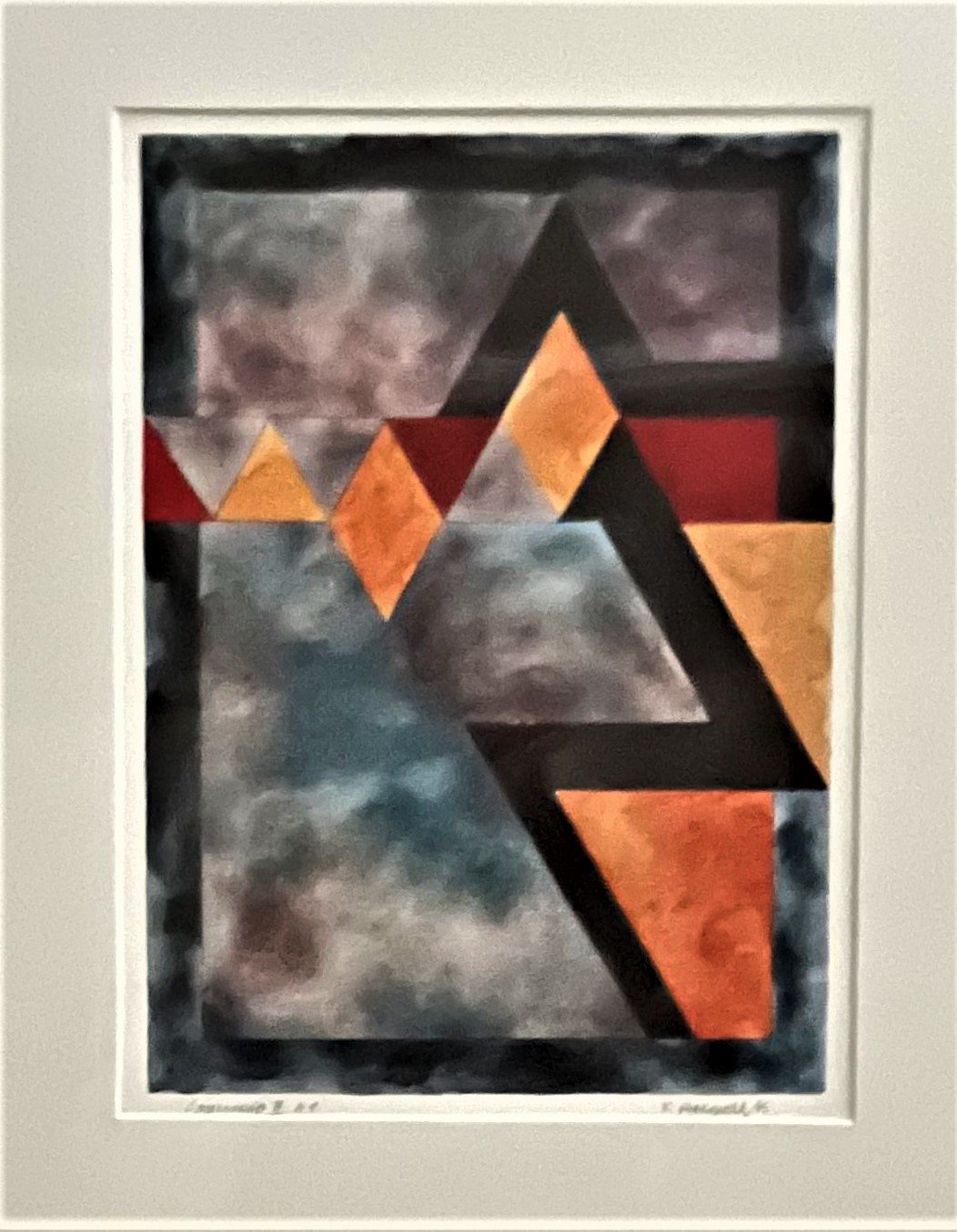 "Capriccio" represents an extensive series of Achepohl's Mediterranean-themed artwork, beginning with "Egypt: Day & Night", and including "Garden of Stone and Light", "Venezia", and "Mozaik". His overall richness of form, of texture, the incessant movement among shapes and media could suggest that action alone is expressing itself, one visceral impulse following another in mindful technique. In these "suites" of paintings. Achepohl transformed his art as watercolors became intaglios became woodcuts became oils; as engravings became mezzotints became watercolor with color pencil. Each piece becomes movement unto its own.