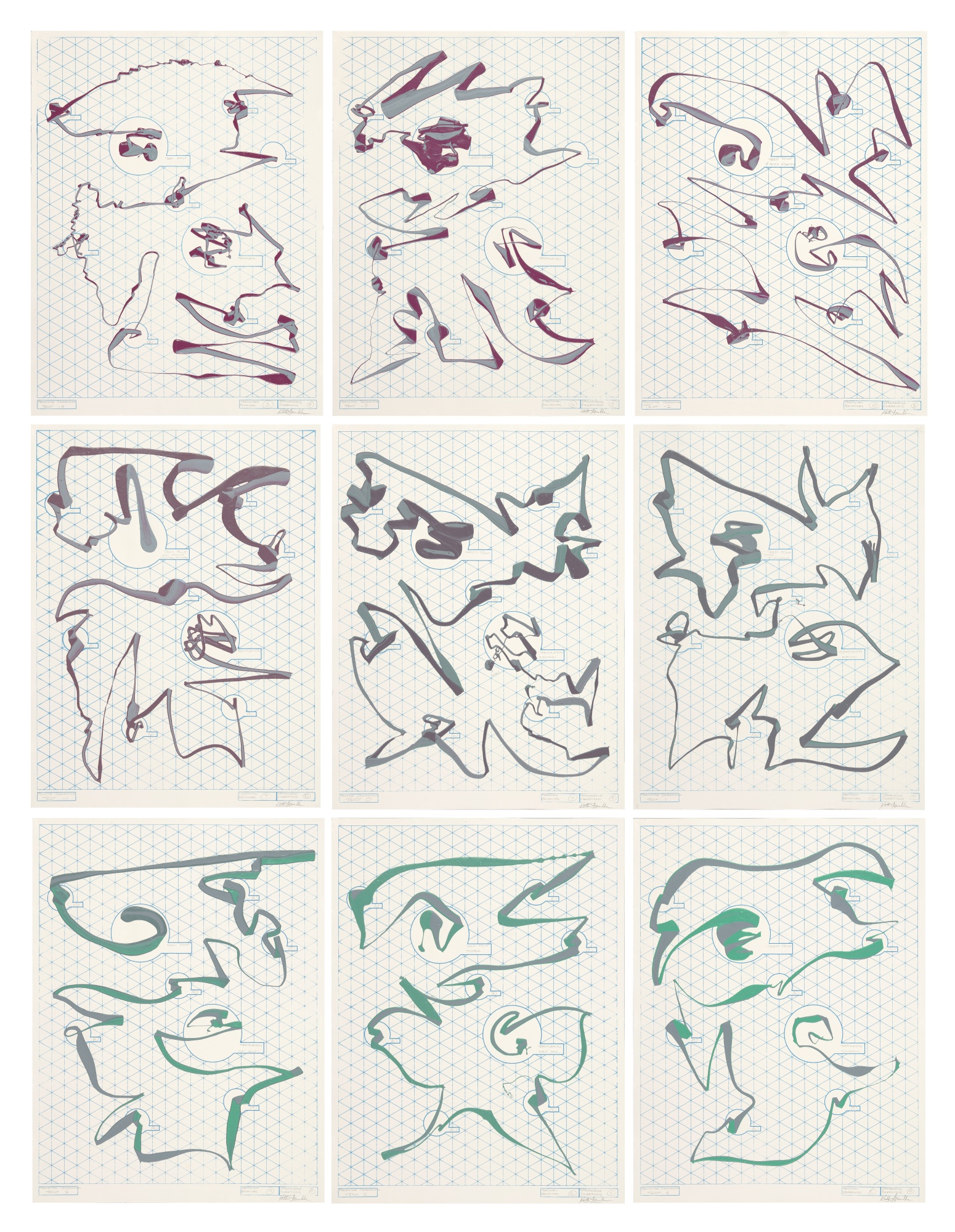 9 Artworks comprising the entire "Dr. Armbruster's Predictive Sequencing Test" Series, available as a set.