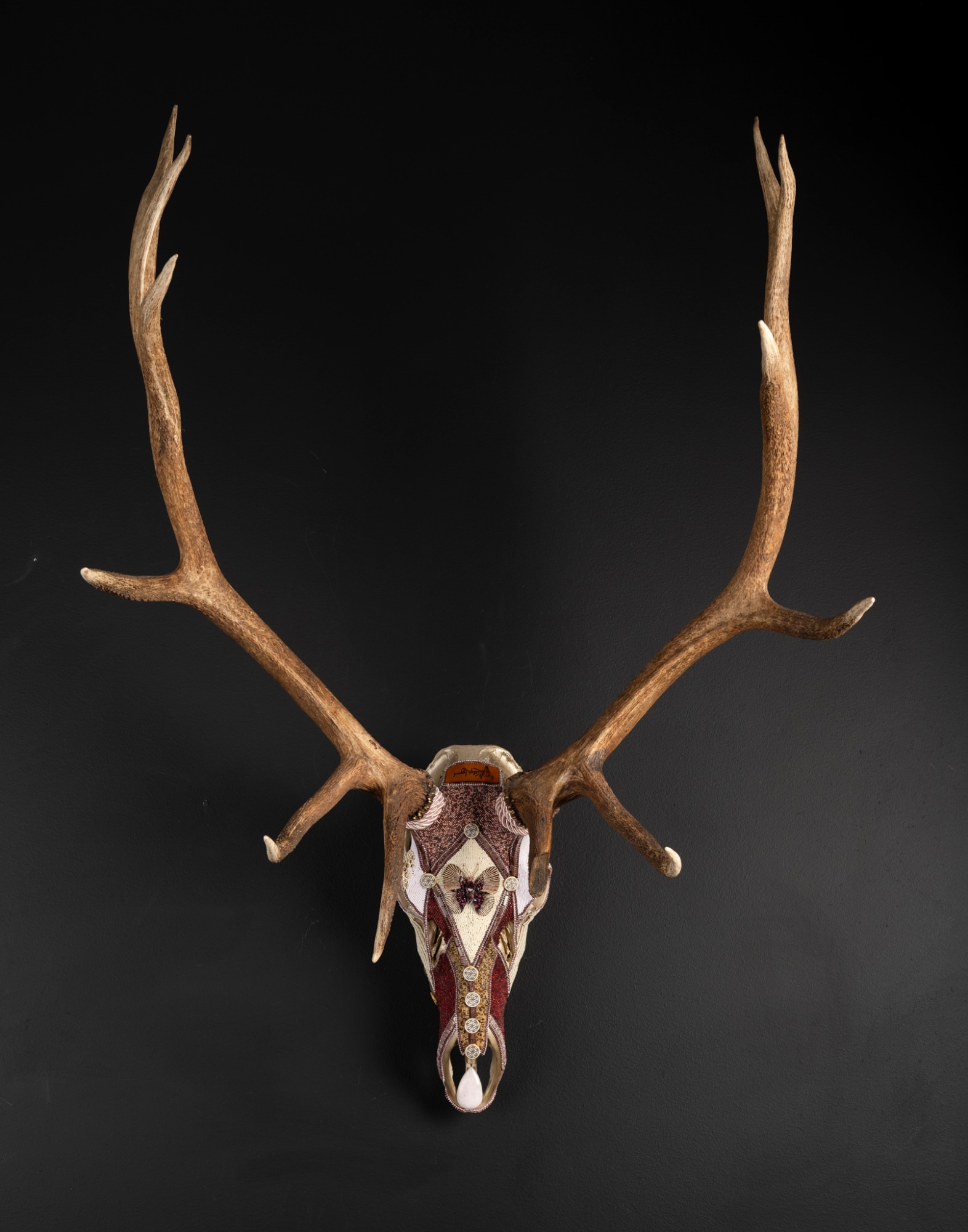 I have beaded numerous elk skulls for my husband, and have them displayed around our home. Being that they are his trophies, he won't part with them for me to display them publicly. Which is why I was super excited to stumble upon Clear Creek Trading in Sedona last time I passed through. Clear Creek had two elk skull for sale, so I was able to purchase one and am excited to display it at my upcoming shows.