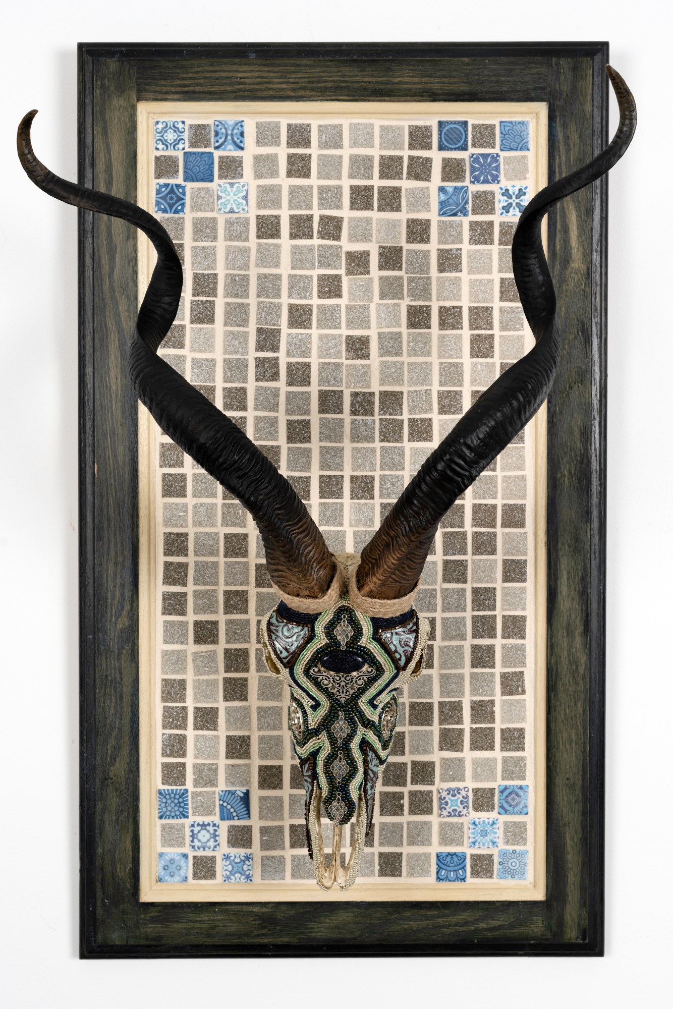 I started creating these skulls in the summer of 2021 - during the pandemic. My first ones were almost all mosaic tile and grout. I soon began experimenting with strings of beads, after taking a class from Katherine England. https://www.katherineengland.com/ This morphed into a new style combining many different techniques to create a very unique style. Growing up, my dad was a hunter and taxidermist, so animal skulls were a part of my life from a young age. Then I married a hunter myself, and the skull collection grew.