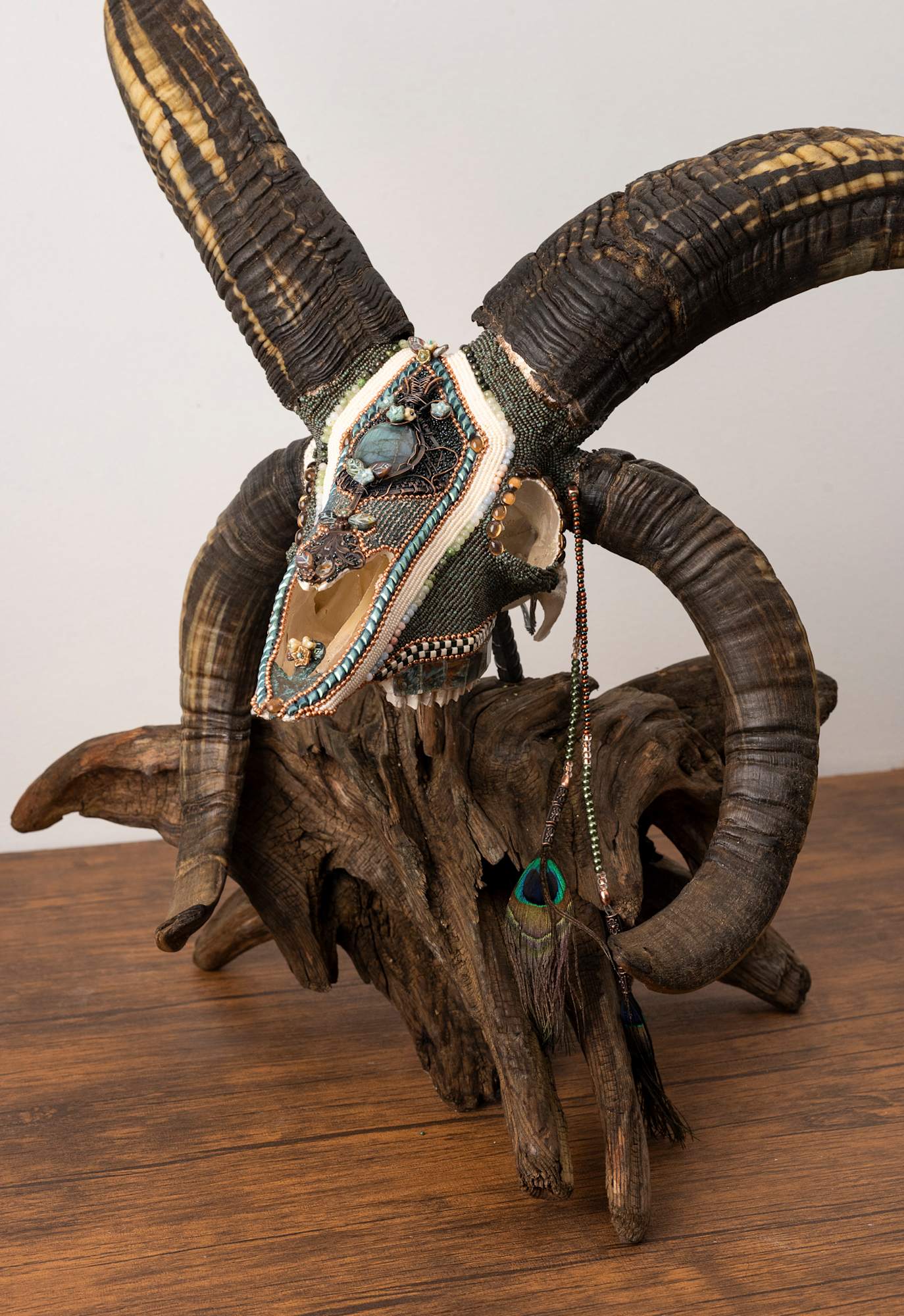 I decided that my very next skull purchase was going to be a Jacob Sheep. I found this amazing skull on EBay, which I usually avoid because I hate the format of the app. But, when you are looking for something specific, I will go anywhere to find my heart's desire. The seller said he had "minor flaws", but mostly it was just old and dusty from being stored in a barn for many years. I cleaned him up, made a few repairs and went to work.