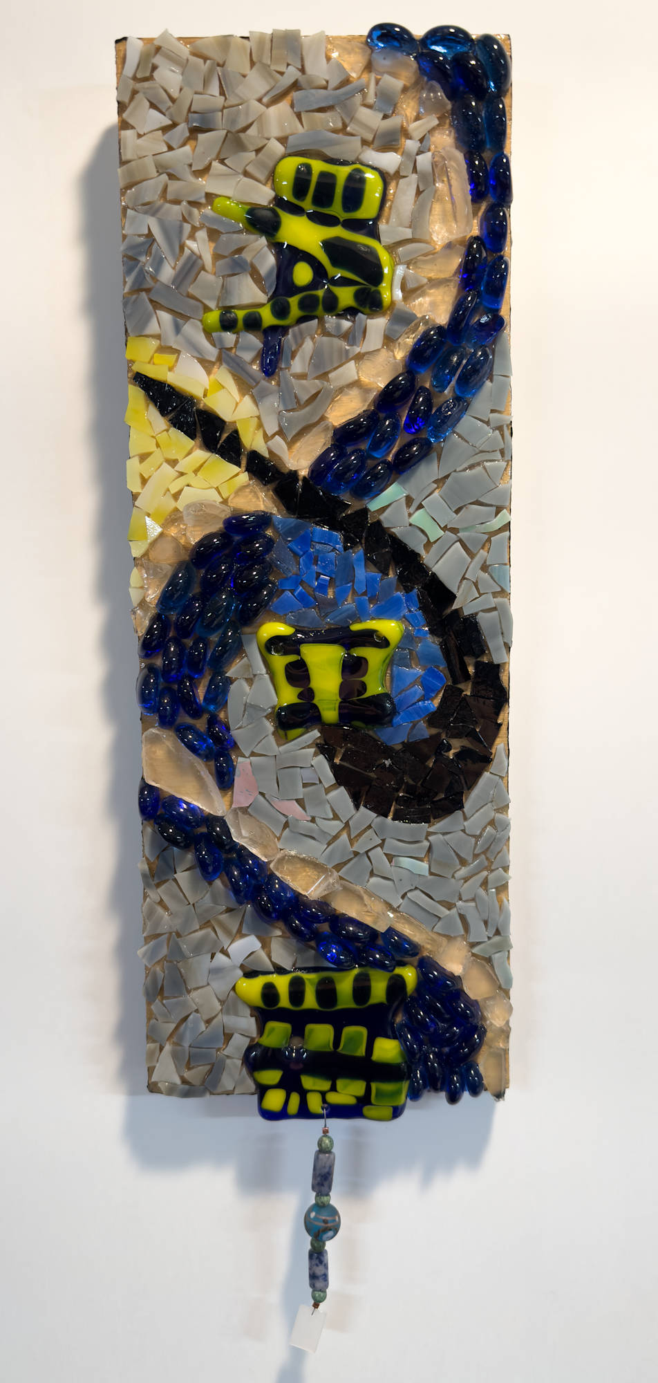 Blues and yellow glass fused pieces with small glass pieces