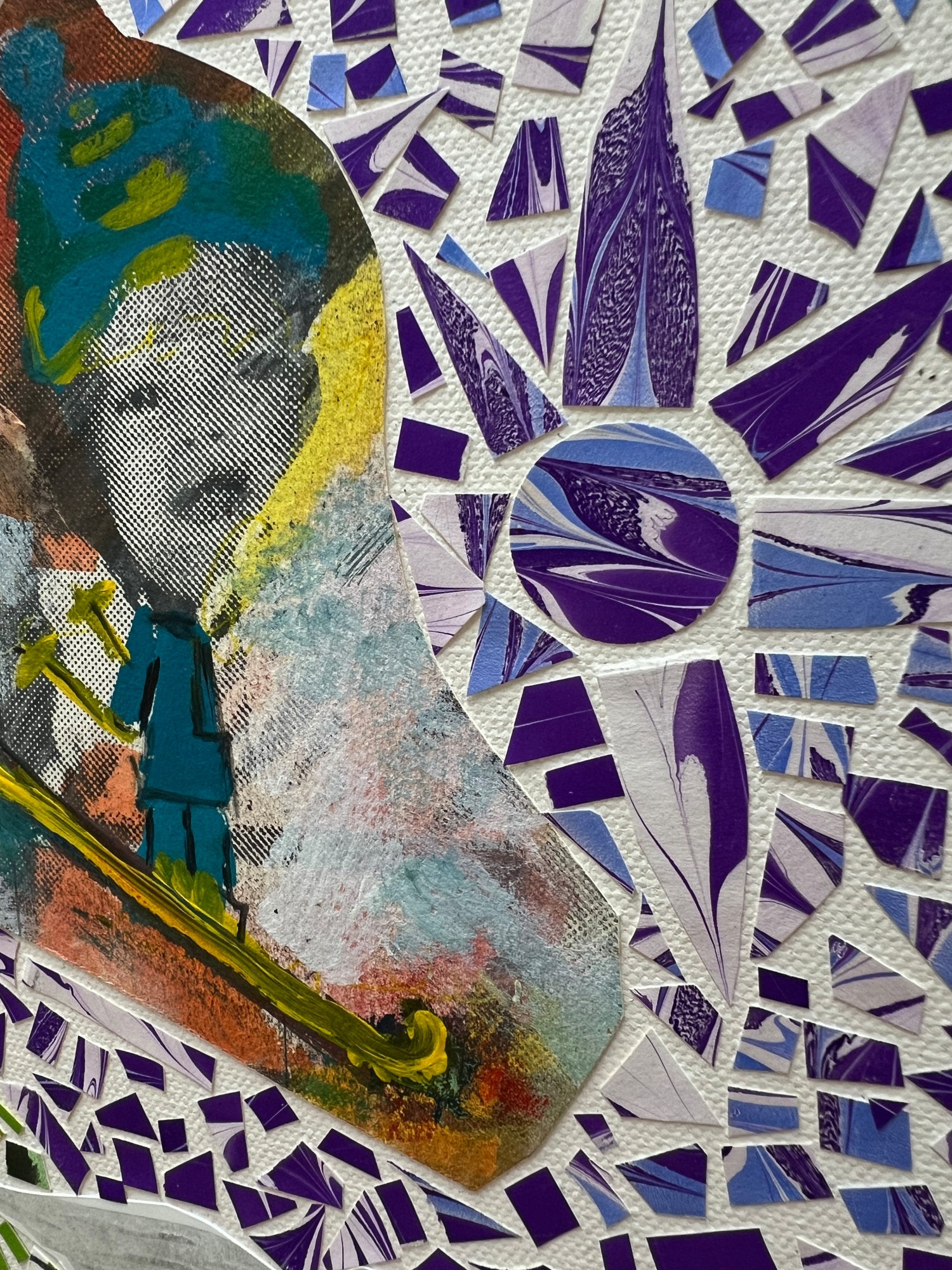 Photo polymer for images, small cut piece from old work to create the mosaic design