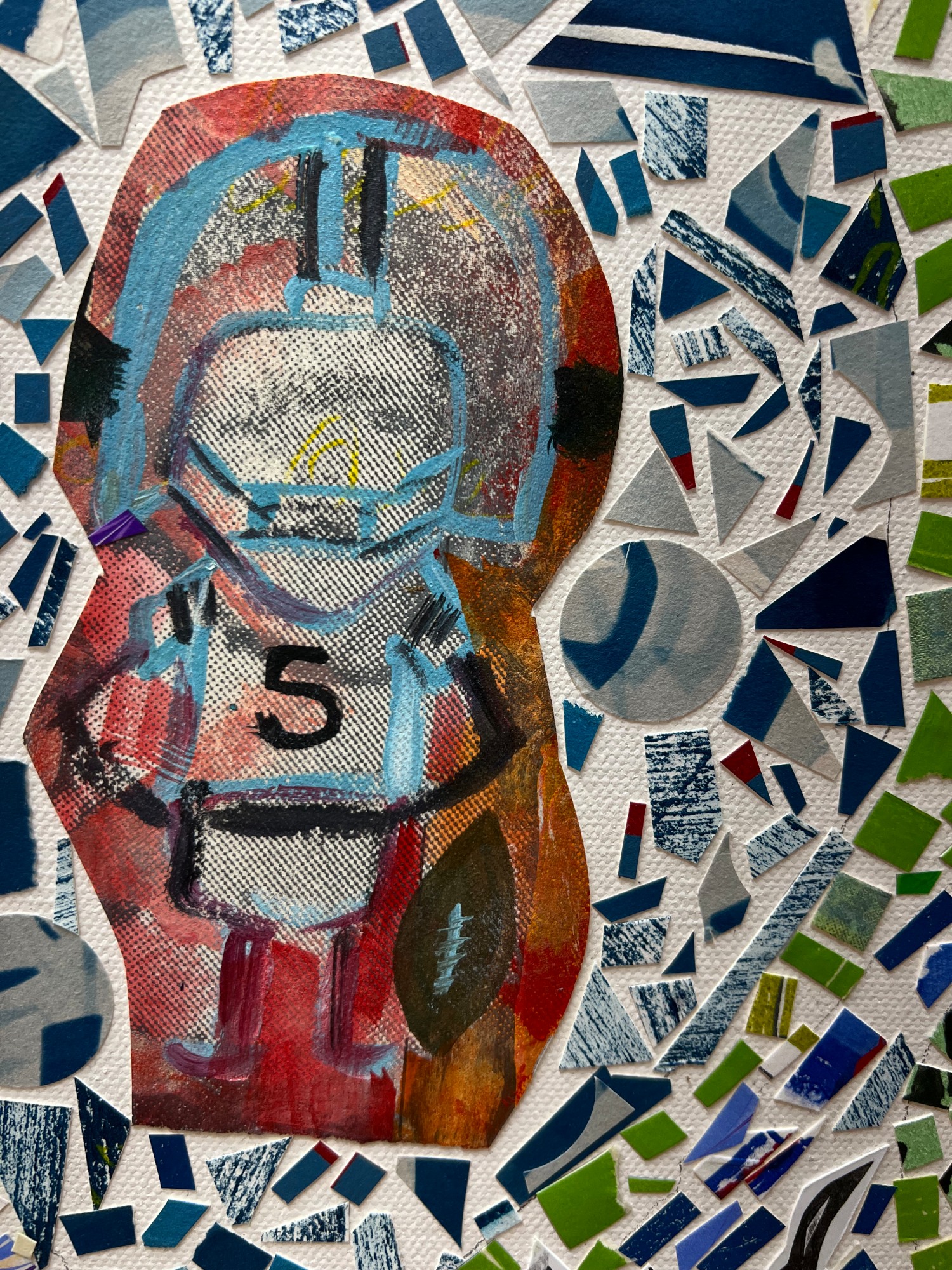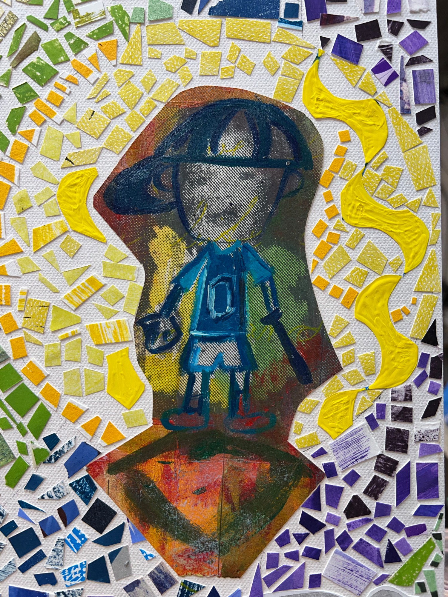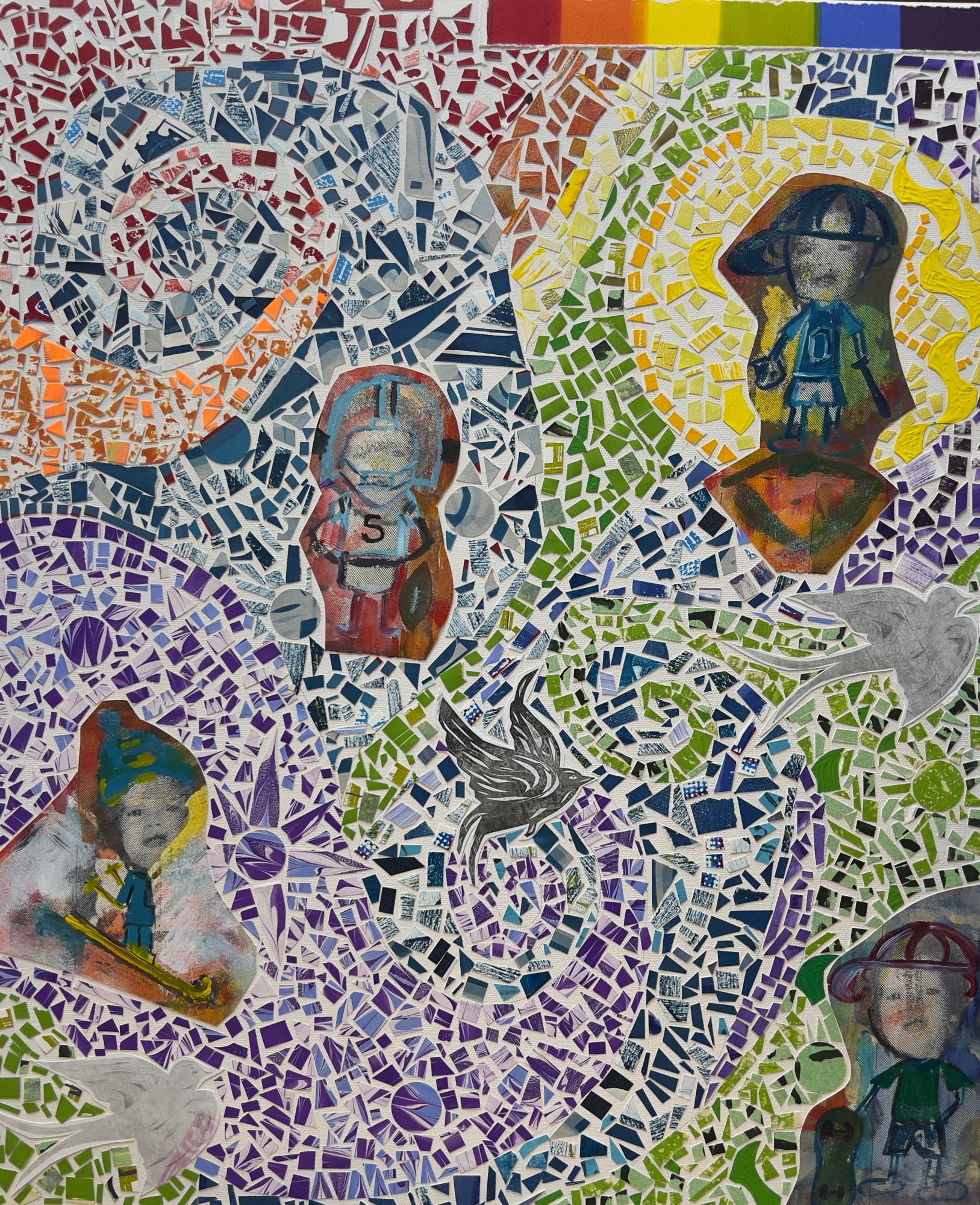 Photo polymer for images, small cut piece from old work to create the mosaic design