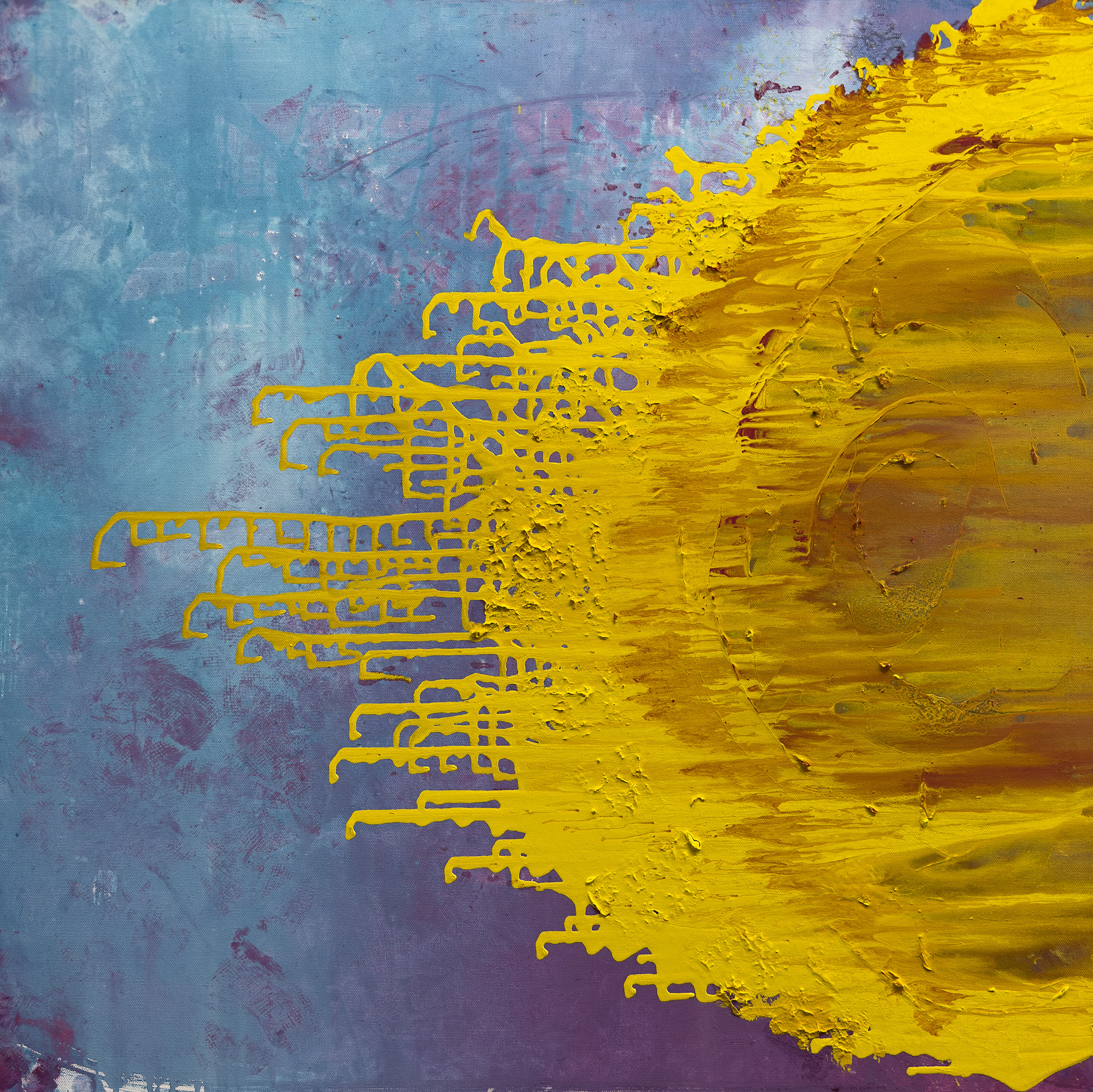 Many layers of paint, tempura build up and Gel medium for the texture.