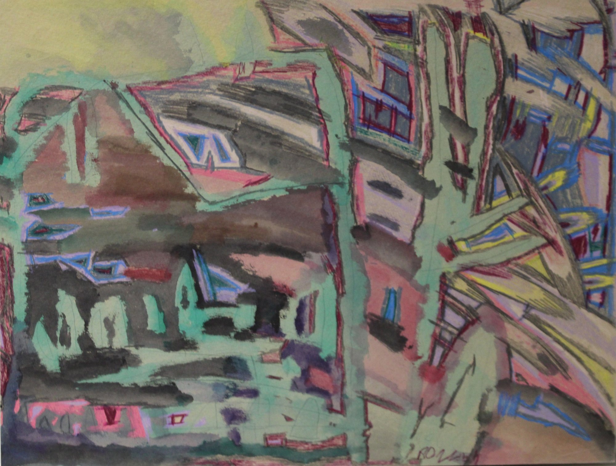 Watercolor, colored pencil