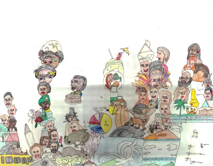 Crayon, graphite, pen