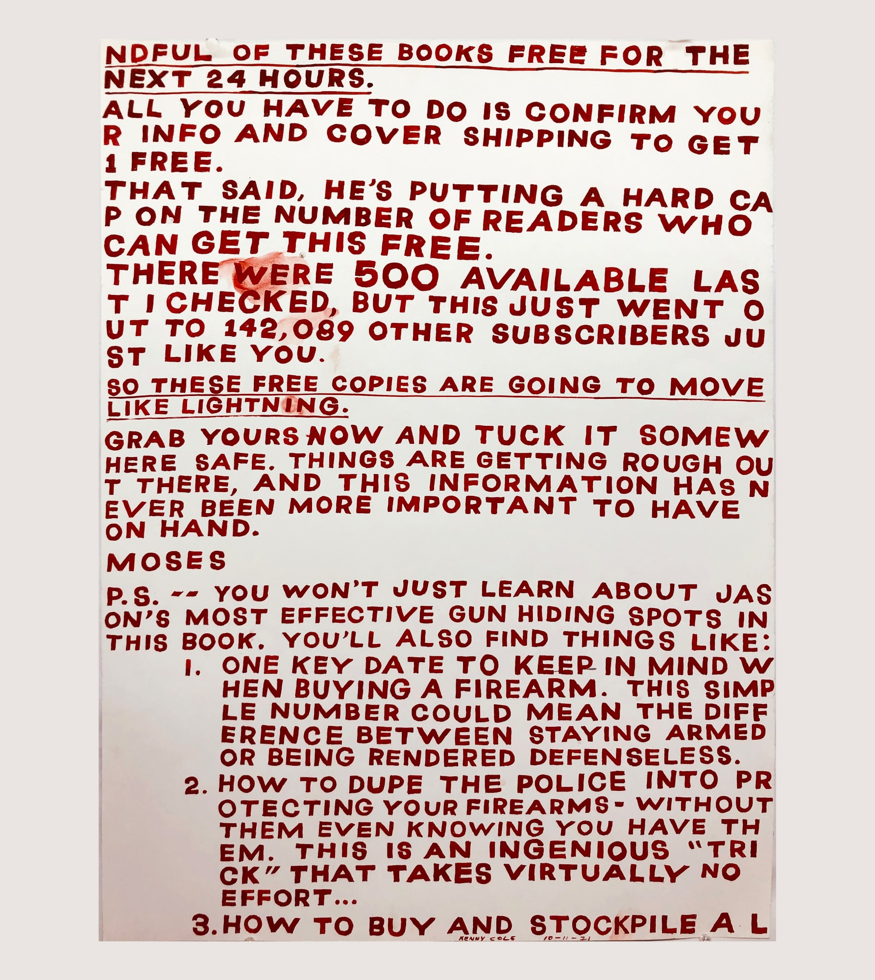 This work on paper is the second "panel" of a three "panel" piece. The text continues onto the next panel. The price listed is for all three panels.