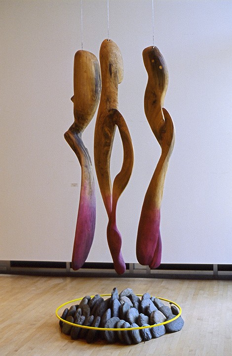 Message"A Leaf Falls, a Man Dies, a Spirit Rises", 144 X 48 X 48", Cherry, Rocks and Steel, 2004.