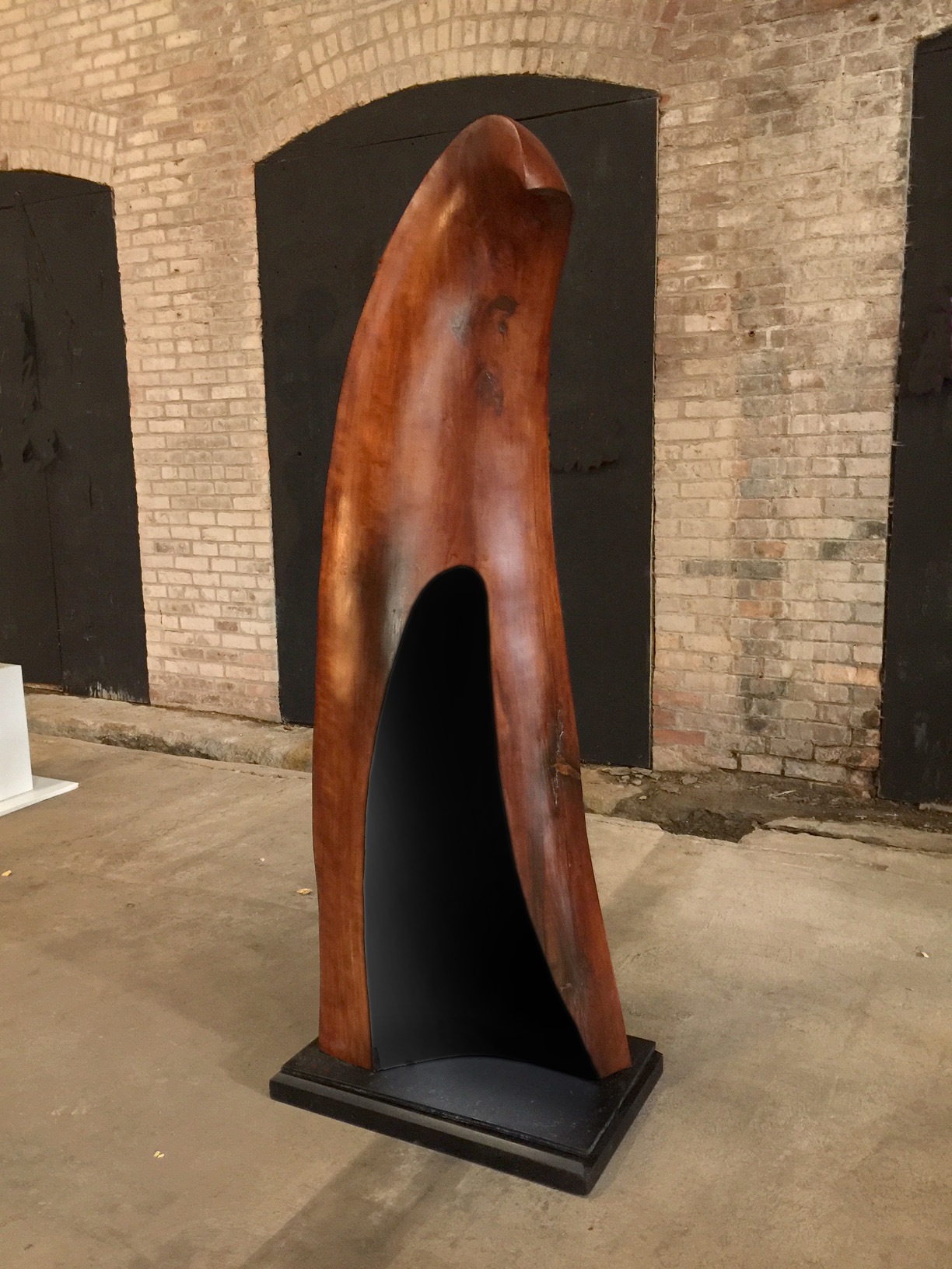 MessageCarved from cherry log with a black concrete inset. Elegant minimalist curve.