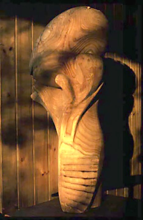 MessageEarly carved wood sculpture. The form is derived from plants.
