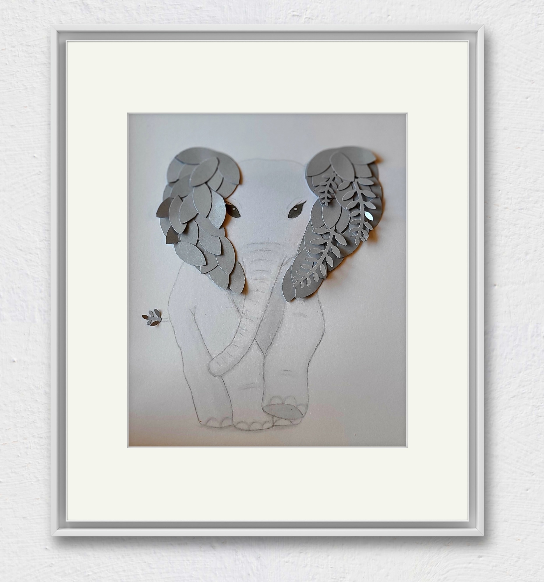 This piece was created digitally with acrylic paint, finished with a 3D element for the ears and tail. It was created to be part of the Animal Portrait Nursery Collection.