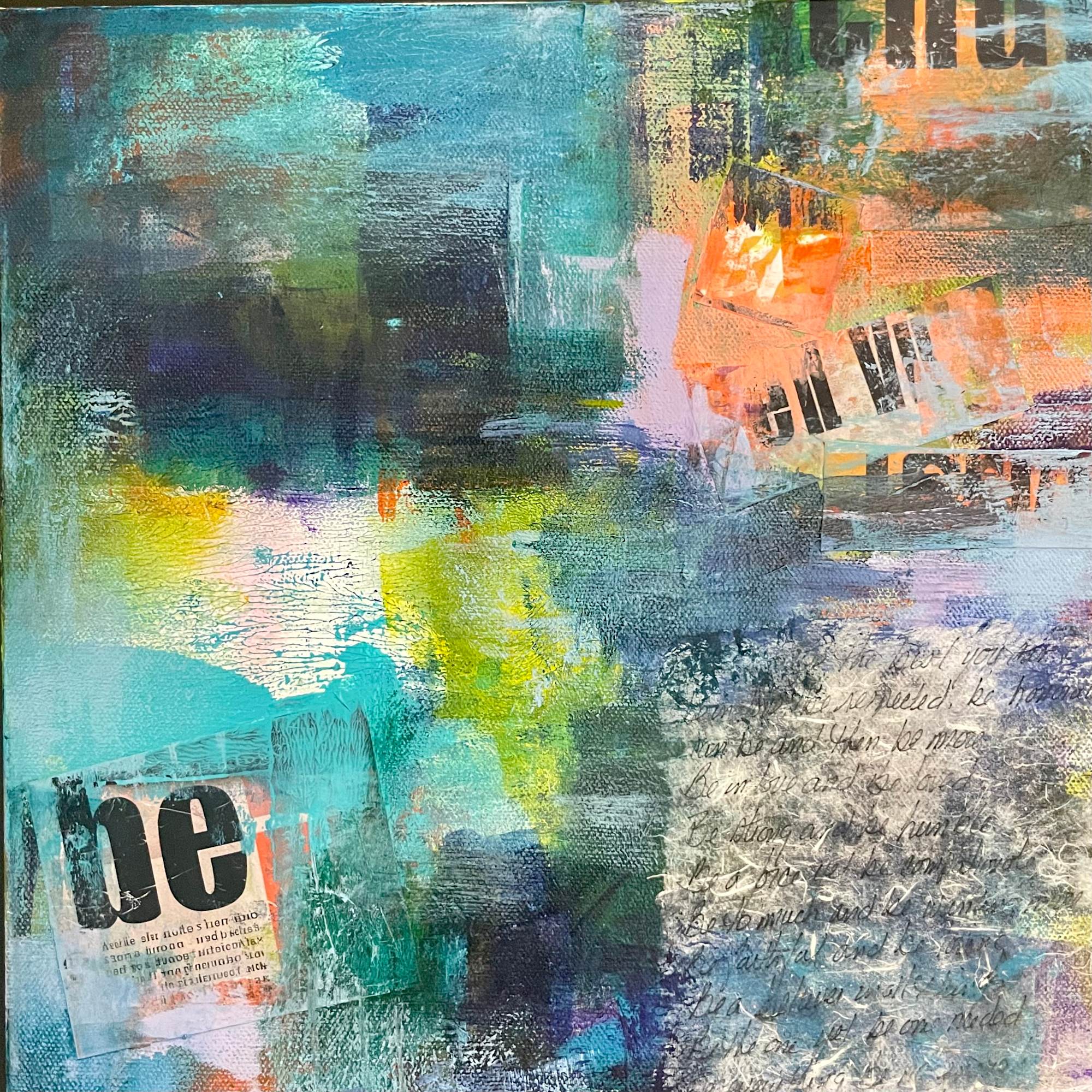 small mixed media collage with acrylic paint.