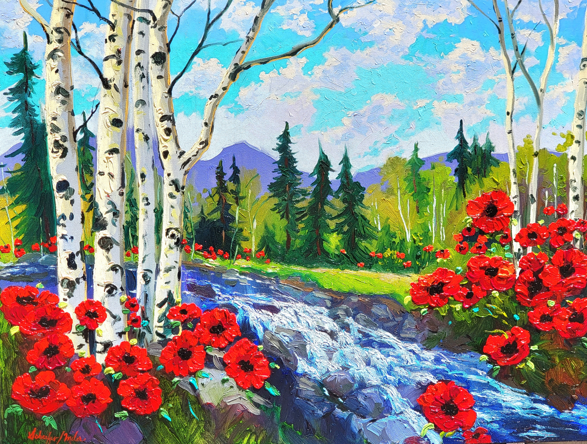 Delightful Stream Oil 30" x 40" by Schaefer/Miles Fine Art Inc. Kevin D. Miles & Wendy Sue Schaefer-Miles  Image: Delightful Stream 30"x40"