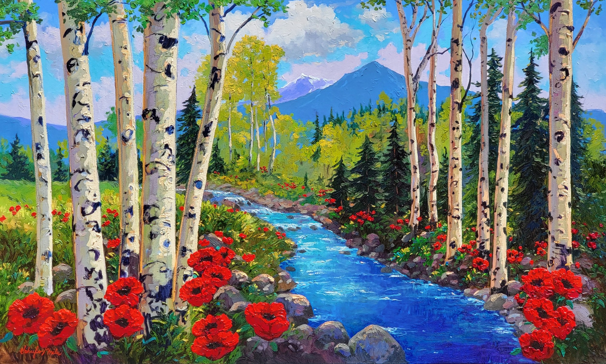Based on our many hikes in Colorado. Aspens, Poppies, and Streams enchant our way.