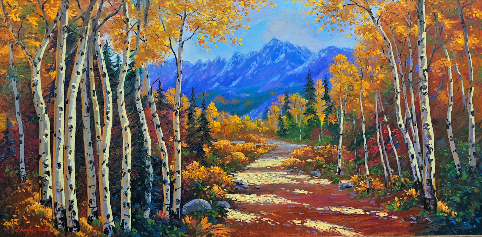 "Golden Inspiration Trail" 30" x 60" Oil on stretched canvas framed.