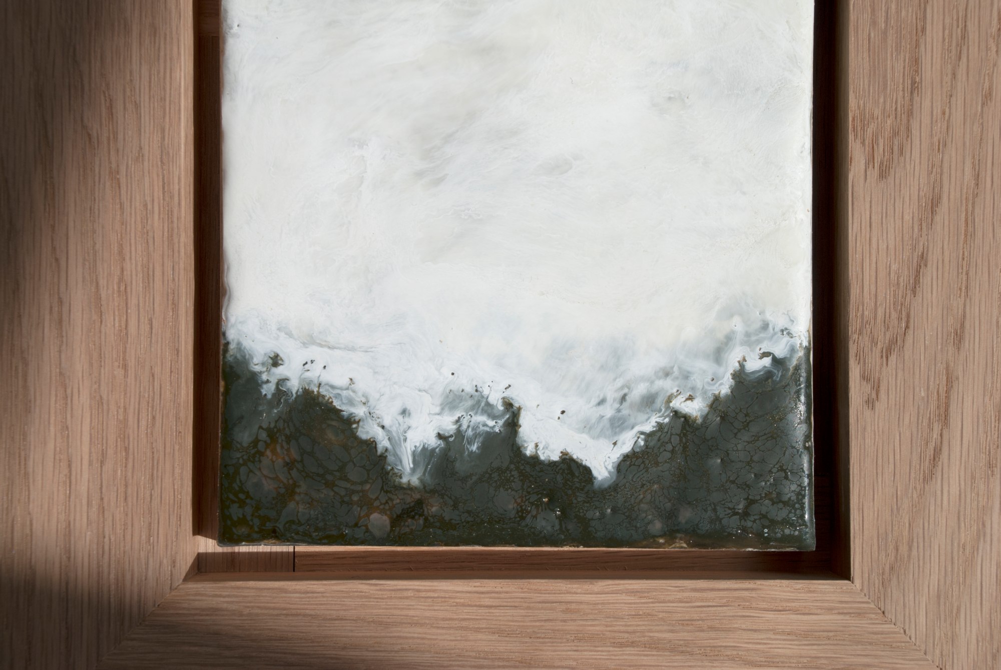 encaustic, oil, shellac, wood cradle, white oak frame