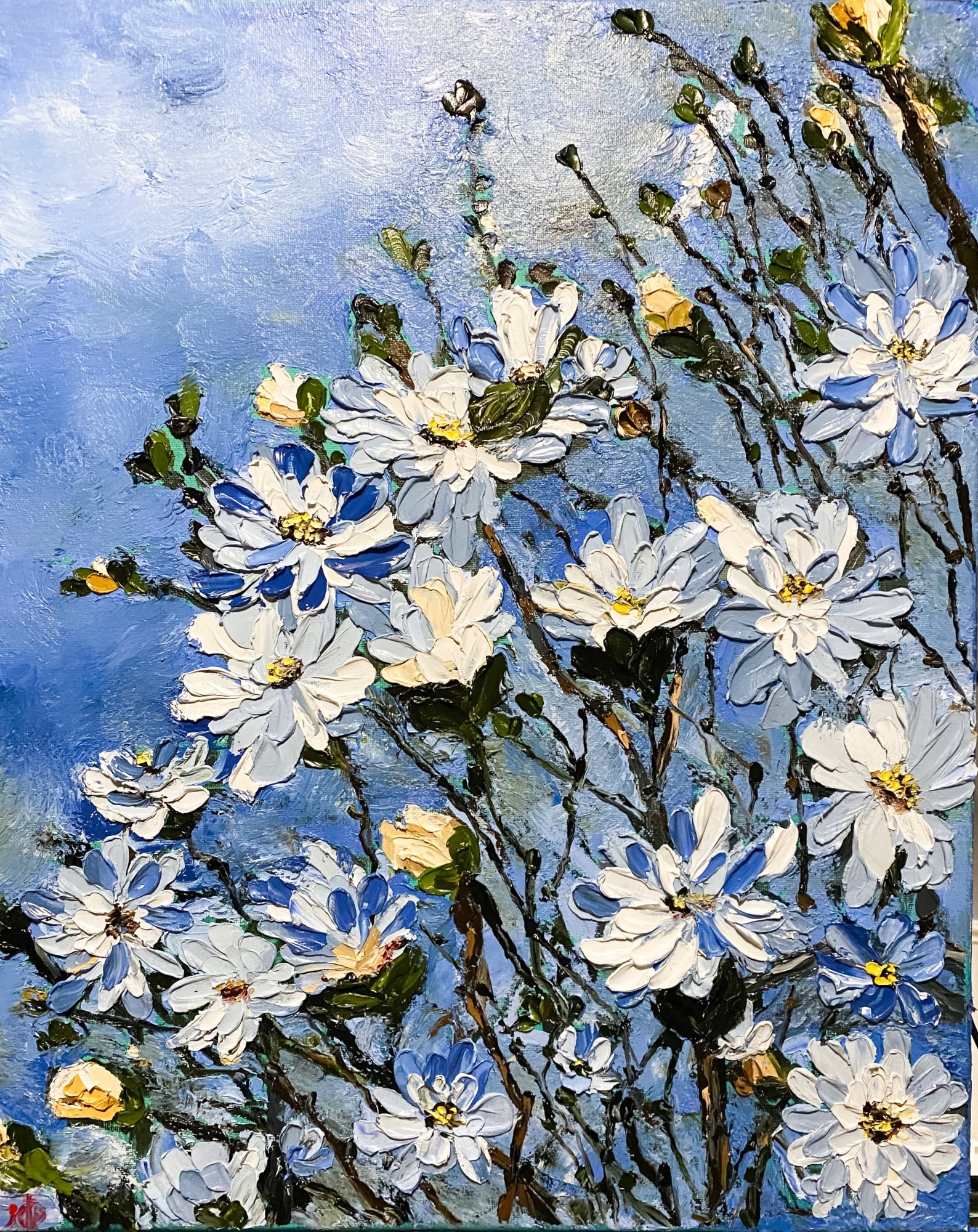 I love the time of year when the temperature is just right - where the temperature goes from 90 to 75 degrees! Feeling the breeze across your face is a wonderful feeling. It reminds me of the song, "It's a Great Day to be Alive" by Travis Tritt. My youngest daughter, Alyssa, and I used to sing this song while we would swing at the park when she was very young. It is a memory that I will always cherish, which is why I had to paint this painting. [email protected]