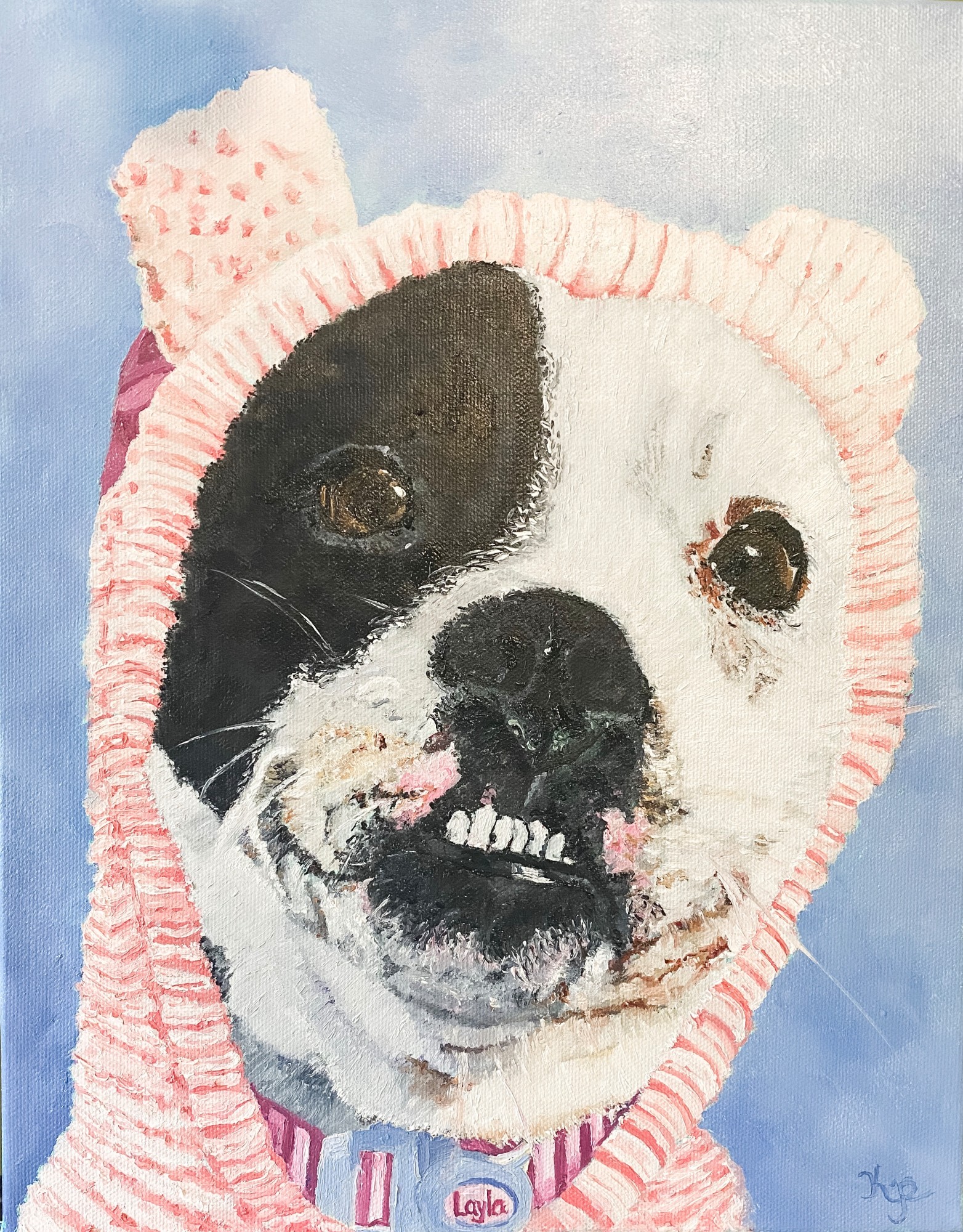 Meet Layla. Layla is a rescue that couldn't be more precious. My client had this sweet painting made for her boyfriend. This was his favorite picture in the whole world! Ashley shared with me how excited she was to give this to her boyfriend. When I sent her the painting upon completion she said, "OMG, it's perfect!!!! Thank you so much!!!" [email protected]