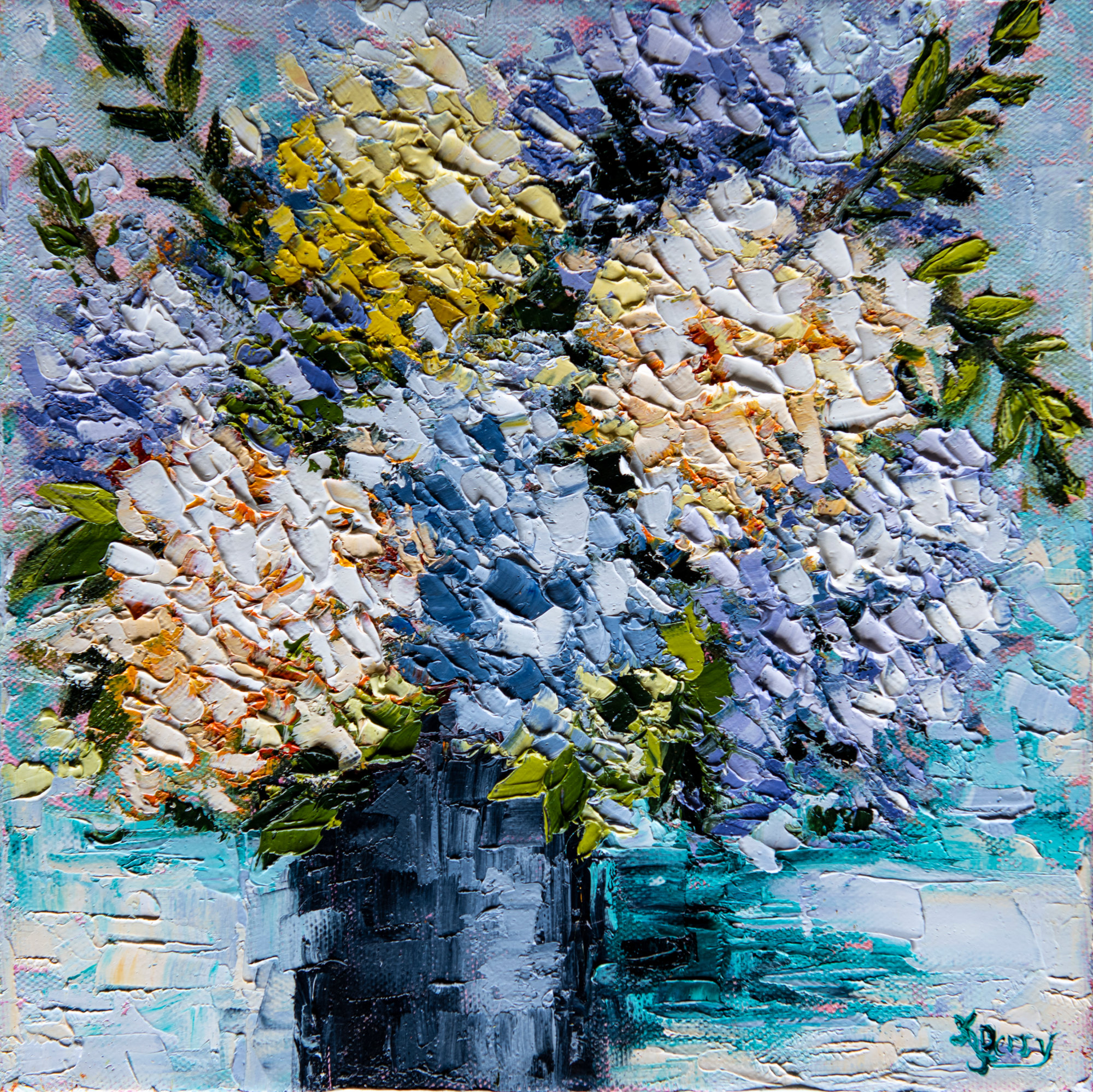 Created from the heart using a unique palette knife technique with the use of bold, intense colors.