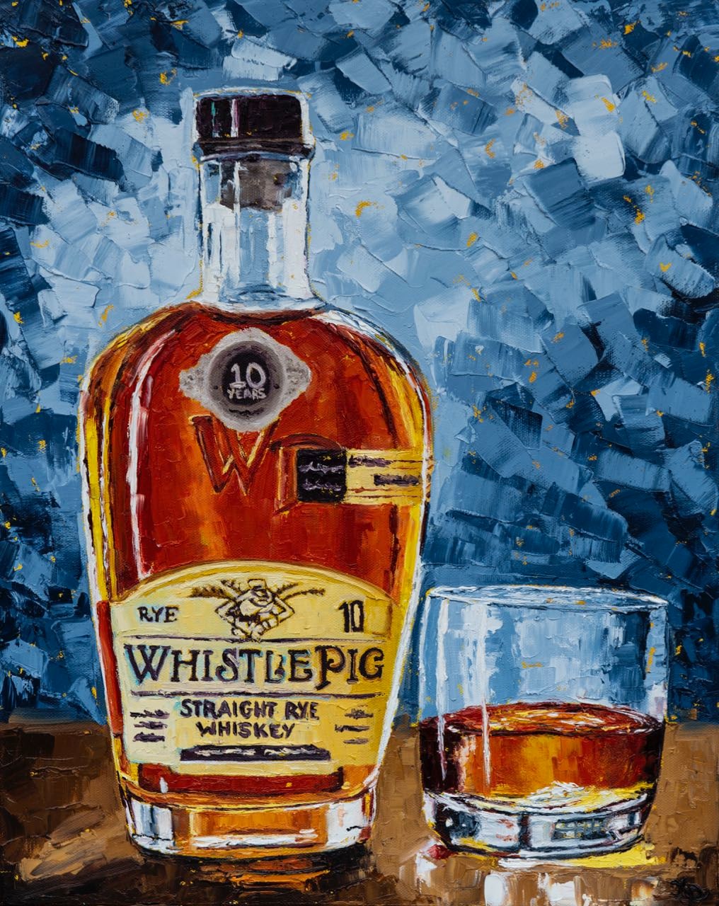Original Oil Painting by Kim Perry. Inspired by the new year of 2021, especially after the year 2020. I absolutely love the beautiful bottles of Kentucky bourbon.