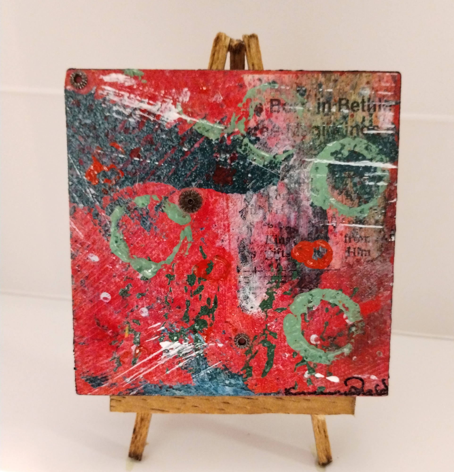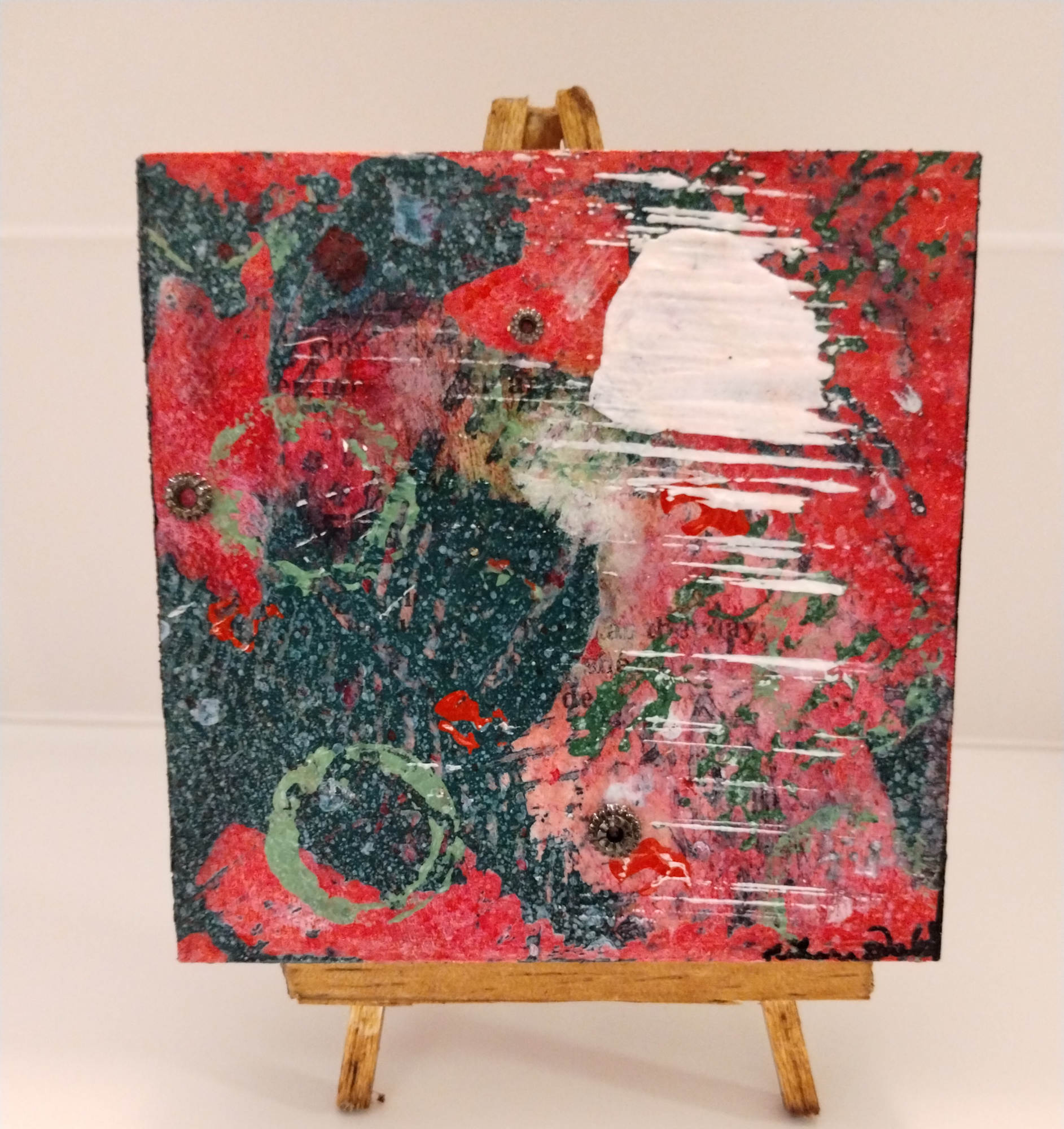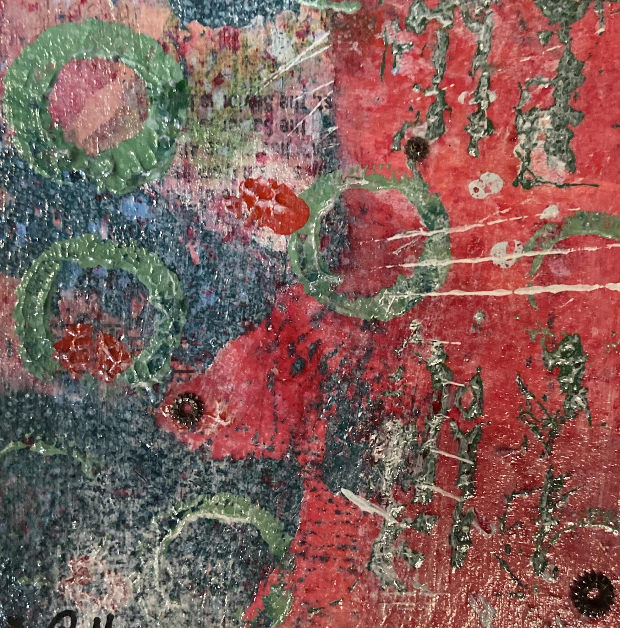 These paintings are inspired by the shining lights of the holiday season. The streets, the trees, the houses all have a beautiful glow that brings a childs delight to our souls. I hope these paintings bring whimsy to all those that see them. Created with acrylic paint and rusty metal pieces from an old quarry or antique watch gears from a watch repair man. Each metal piece has a story. Kimmy ;D