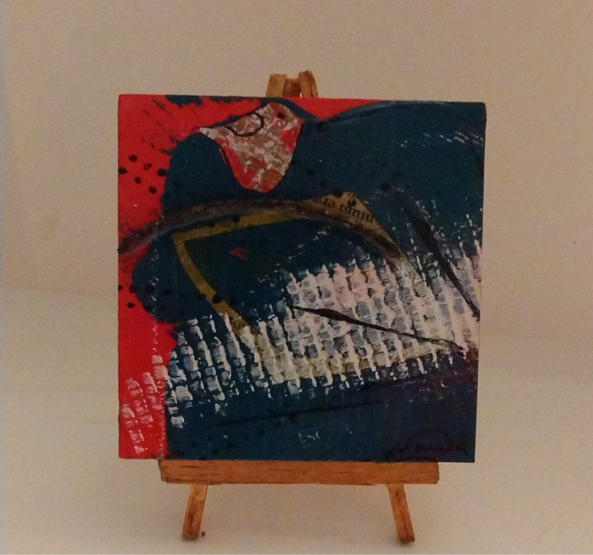 Lil Red Birdies is all about the colors of winter and the beautiful red birds that are part of the winter scenes of blue. The paintings include paper and metal collected from a federal park that was at one time a quarry near my house. The metal seems to be expunged from the mountain each time we have heavy rains. The metal comes in all different shapes and sizes from the mountain. There is adventure in the hunt because you never know what you might find at the bottom of the mountain. So cool! Enjoy Art! Kimmy ;D