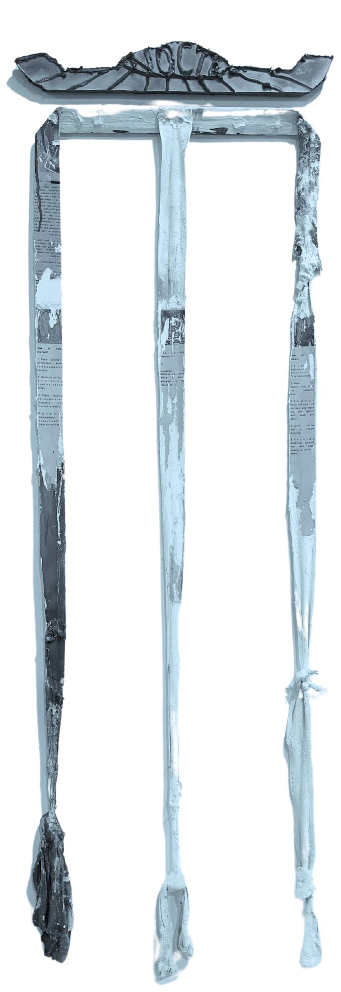 Gauze, fabric, joint compound, spray paint, ink, and drywall