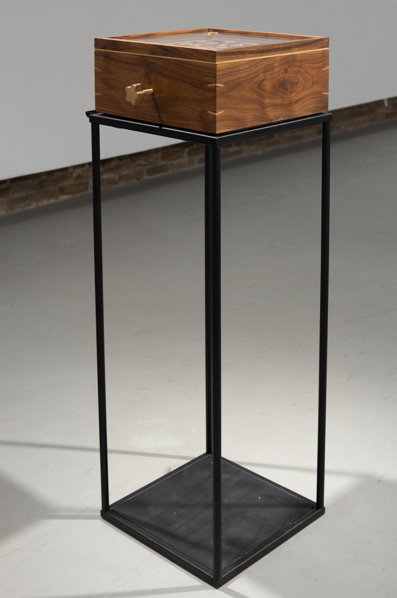 plywood, walnut, beech, plexiglass. metal ball, rope