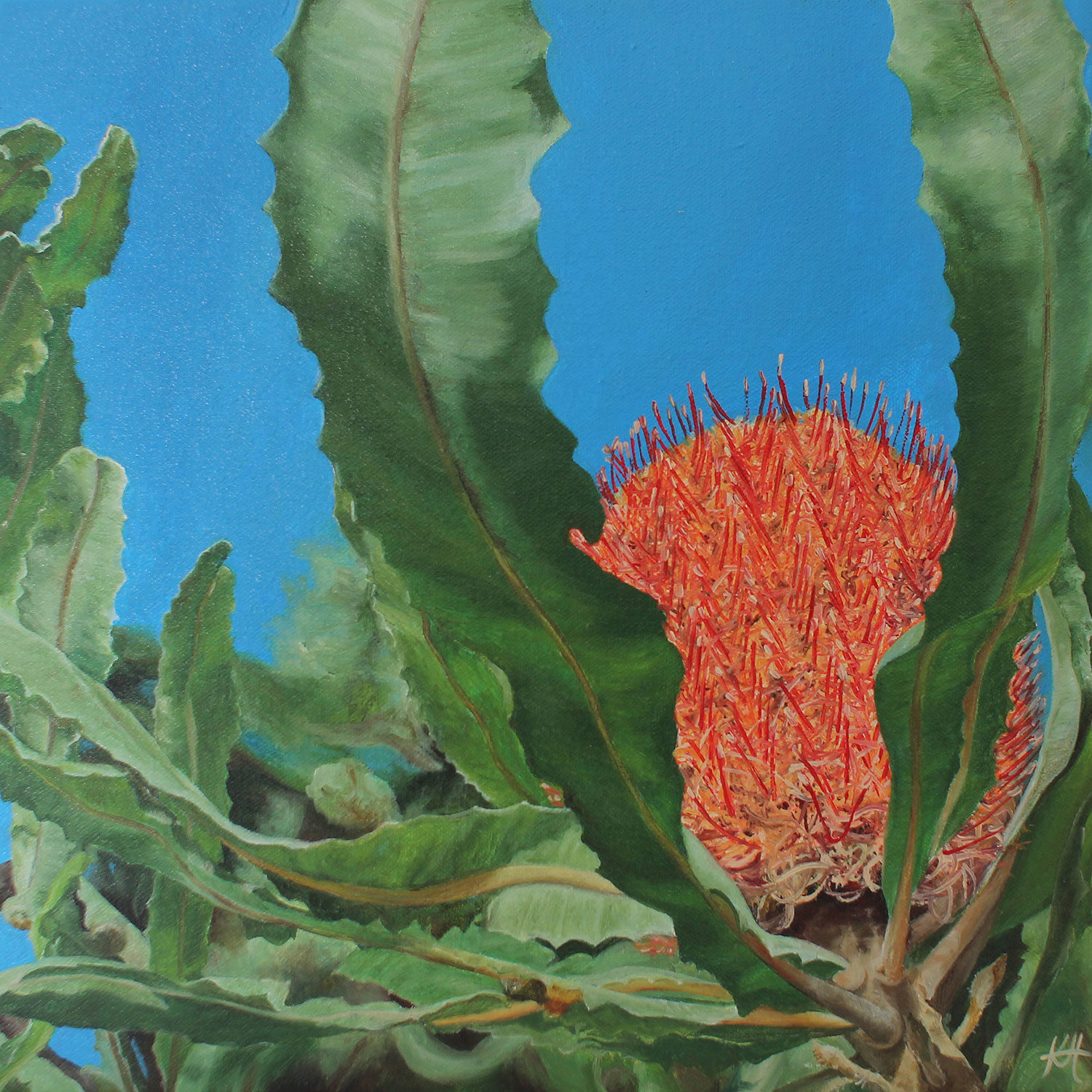 Banksia Blue Sky by Kirsten Hocking  Image: "Banksia Blue Sky", original painting by Kirsten Hocking, oil on canvas, 30.5cm x 30.5cm (unframed)