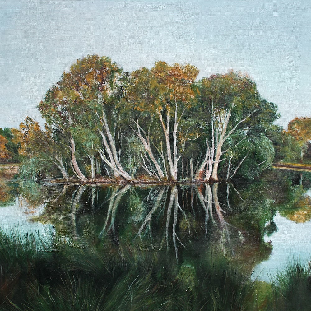 "Standing With Their Feet in the Water", original painting by Kirsten Hocking, oil on linen, 60cm x 60cm, 2023
